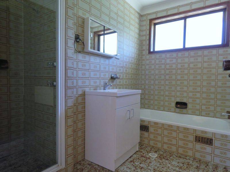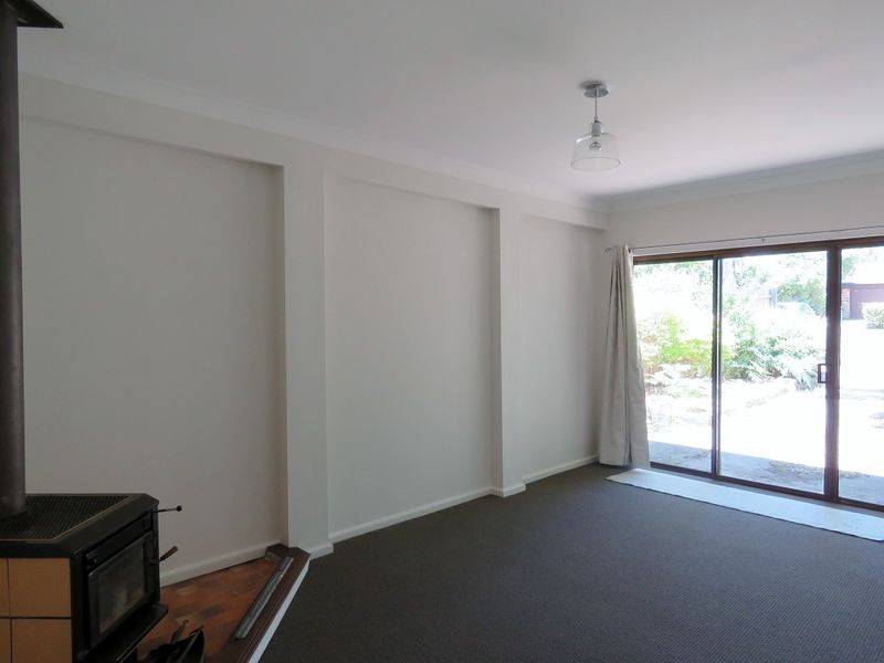 Kitchen/dining, two living areas, electric cooking and hot water, slow combustion fire + LPG bayonet point. Built-in robe in main bedroom, carport at side + large, flat, sunny yard with garden shed at rear.