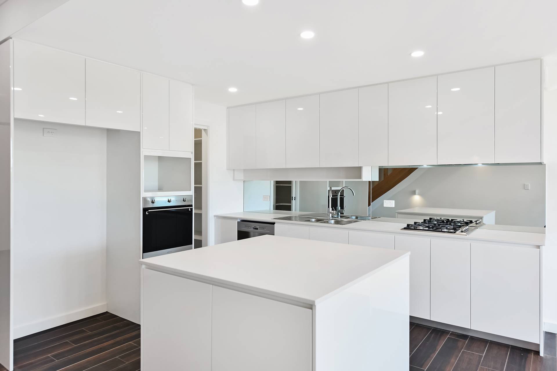 - Designer kitchen with stone benchtops, polyurethane joinery, gas cooking, huge island and walk-in pantry