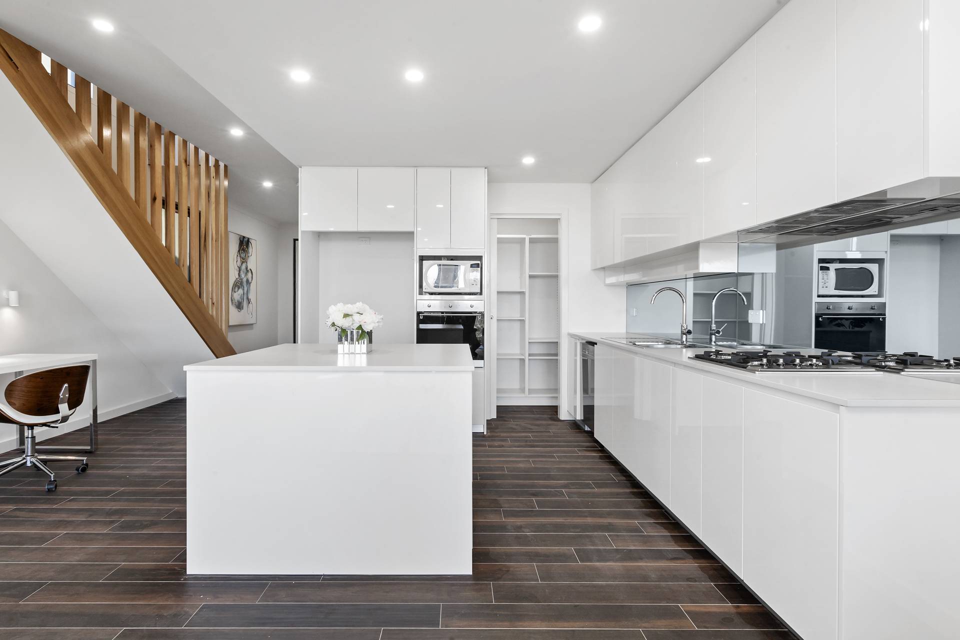 - Designer kitchen with stone benchtops, polyurethane joinery, gas cooking, huge island and walk-in pantry