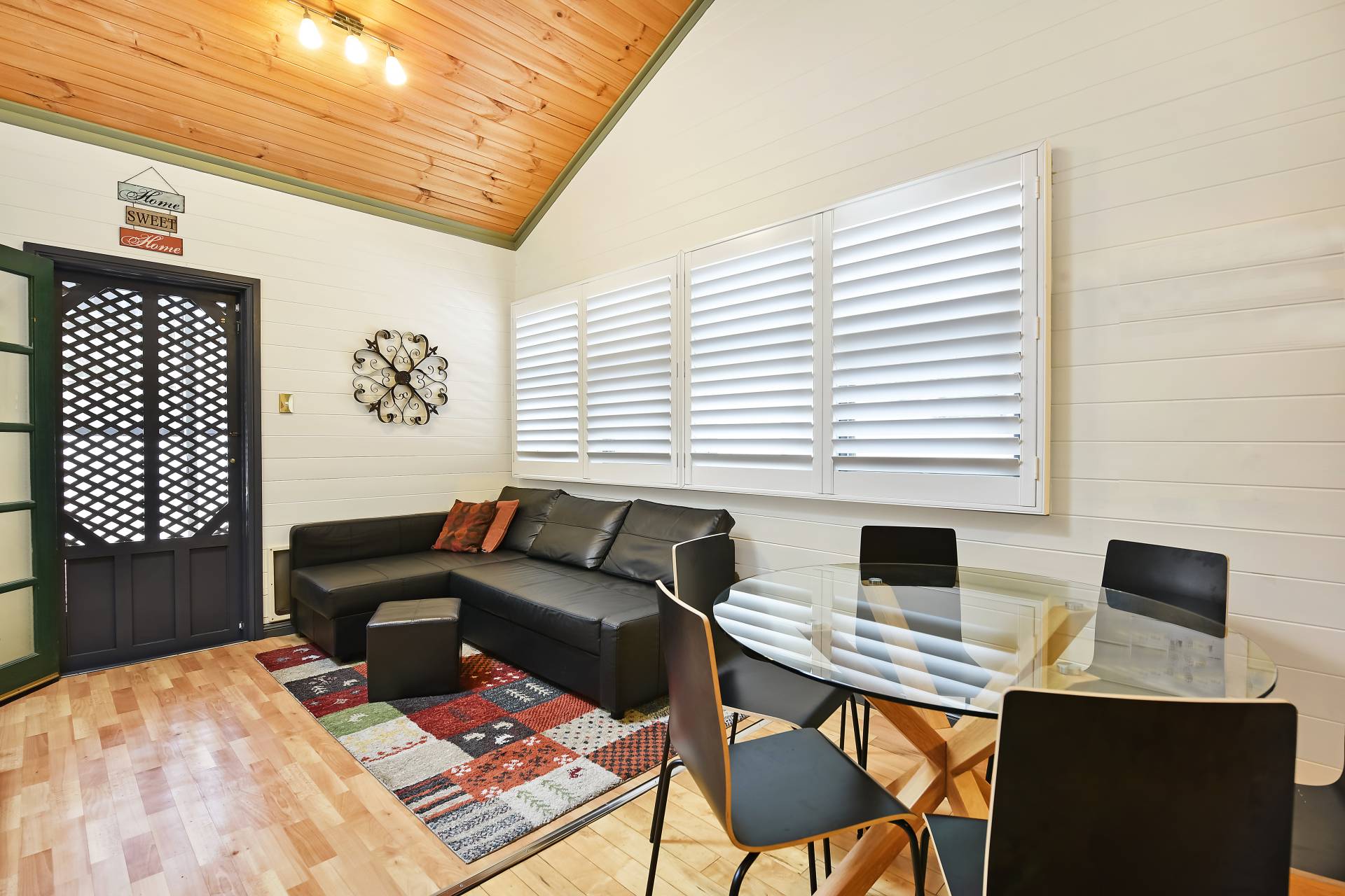 -          Second living/dining area with high vaulted ceilings, electric velux skylight and reverse cycle air conditioning