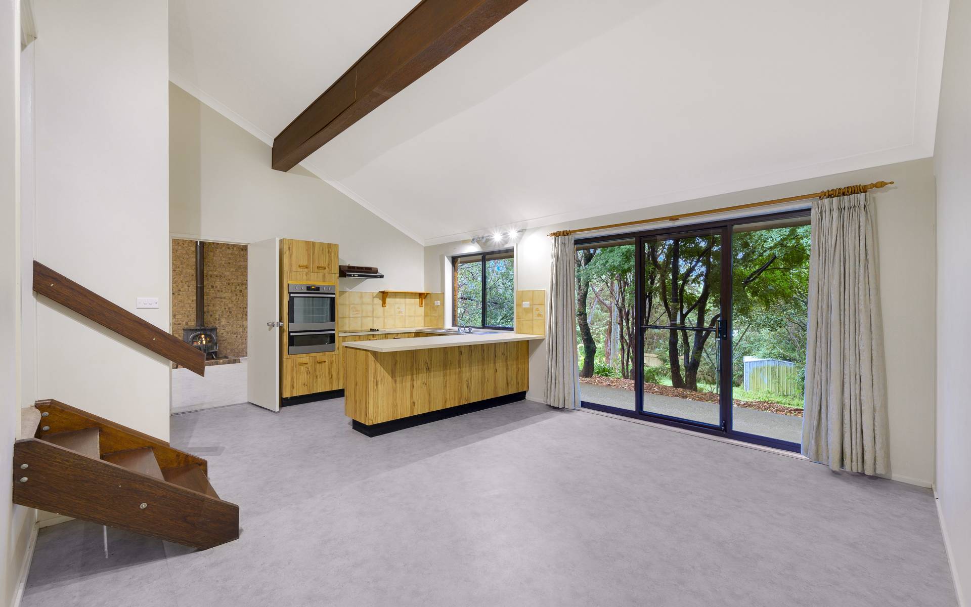 - Spacious living area with slow combustion fire