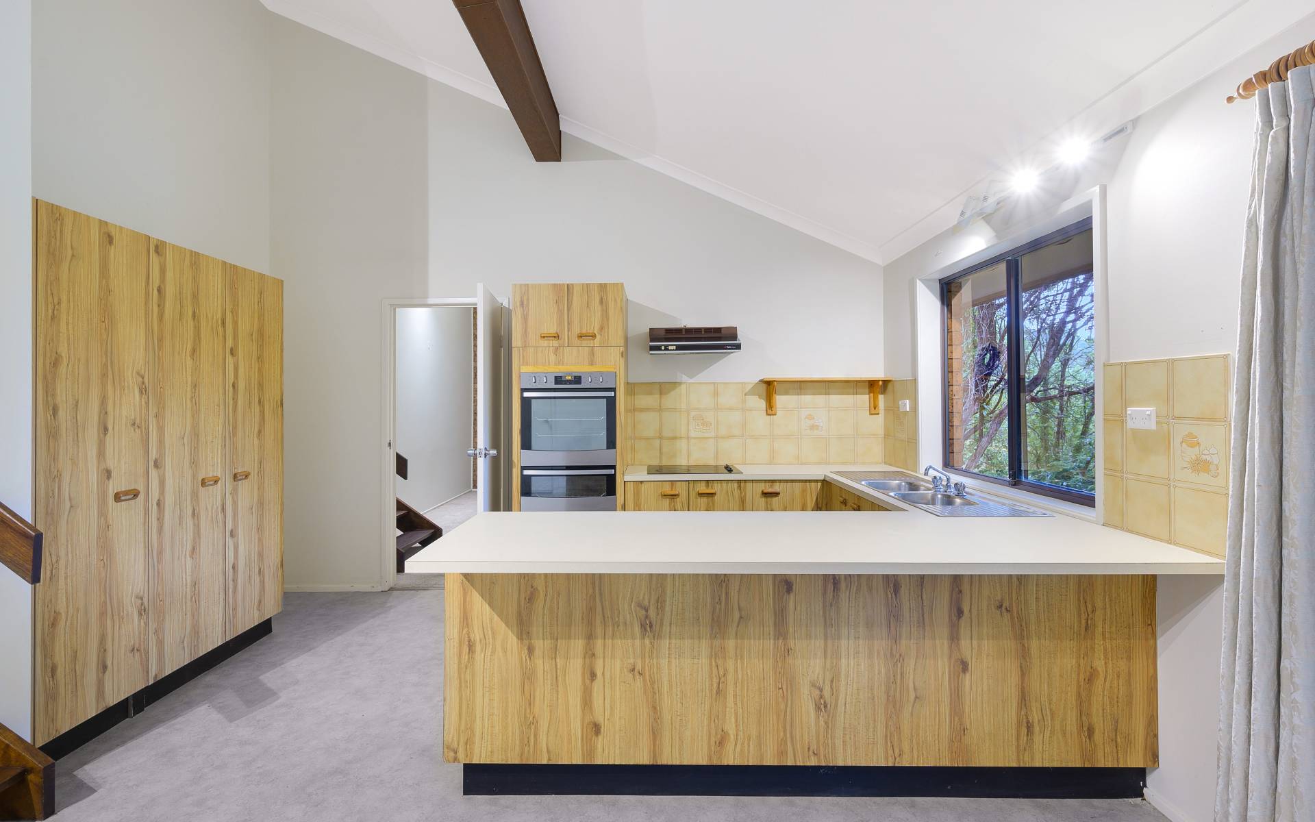 - Spacious kitchen (older style but functional)