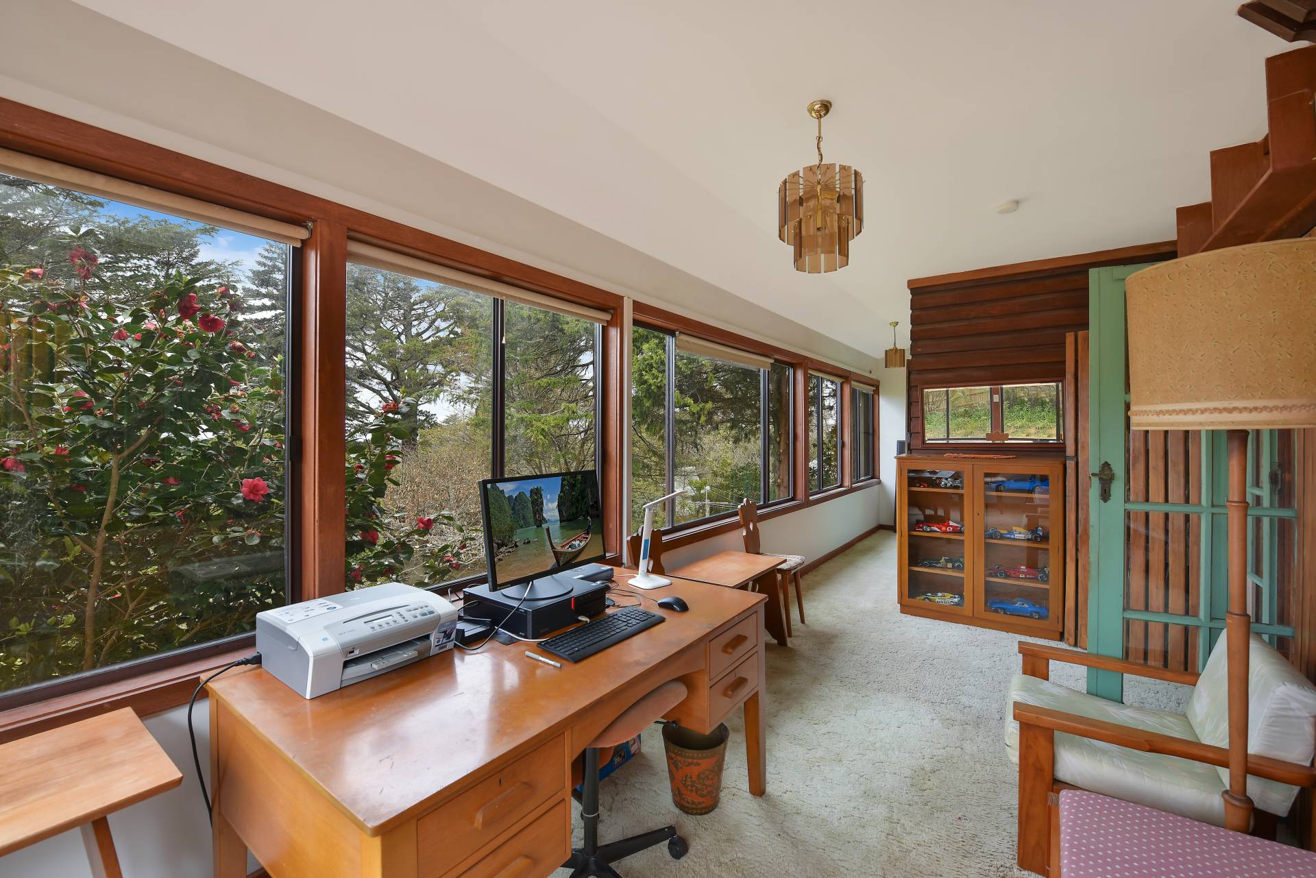 To make the most of the gentle slope it is built on, there is an enclosed balcony at the rear, overlooking the established camelias and enough fruit trees to be called an orchard.