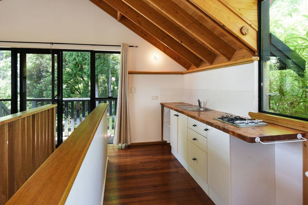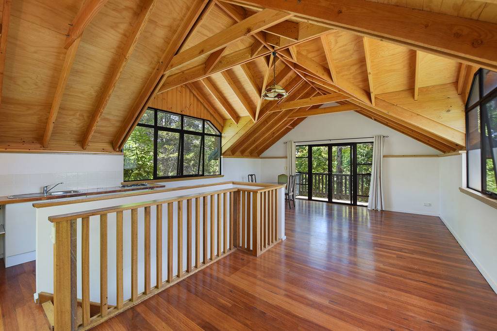 Accommodation comprises of a spacious open plan living/dining area, soaring cathedral ceilings, polished timber floors, kitchenette with gas cooktop, leafy outlook from every window, bathroom with bath/shower and internal laundry facilities.