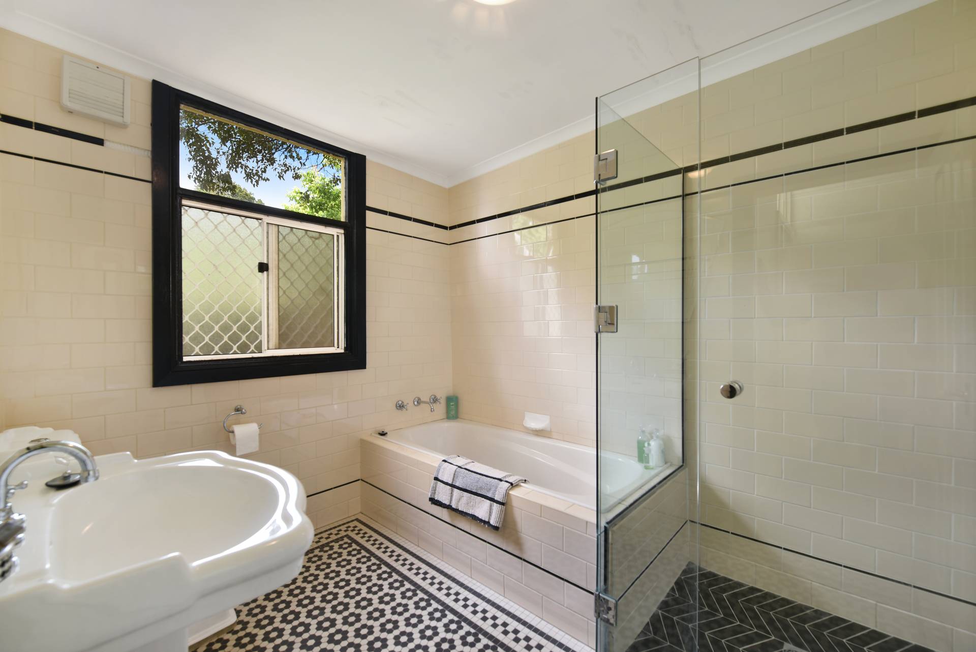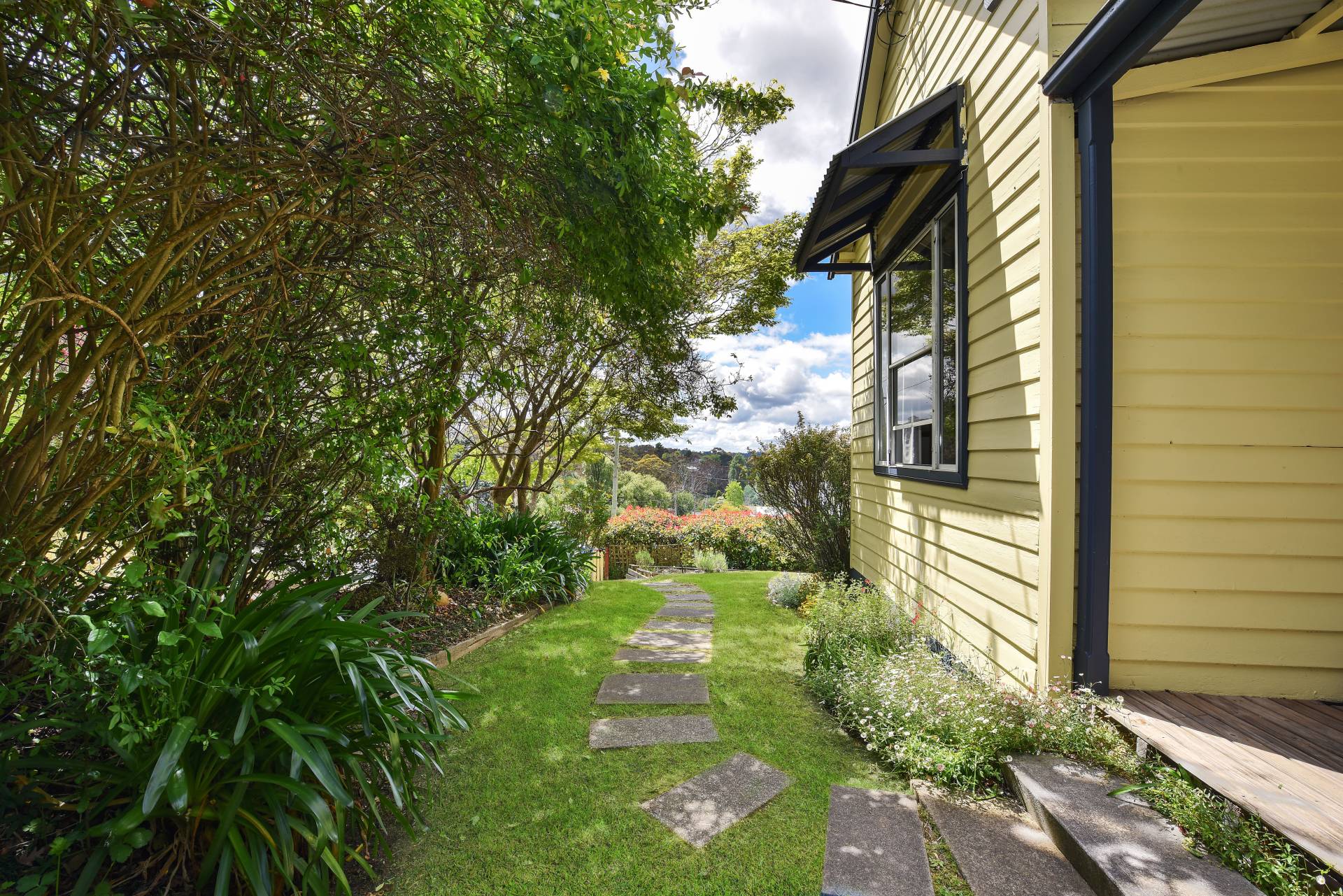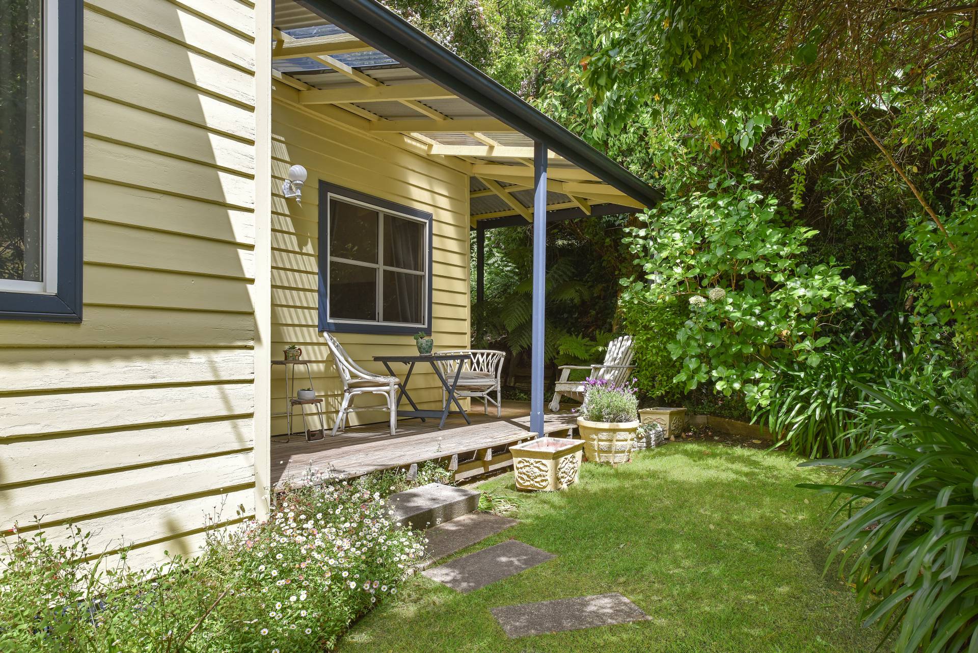 This classic weatherboard cottage has an old time feel about it, except where you want modern – in the neat kitchen and the beautiful bathroom.