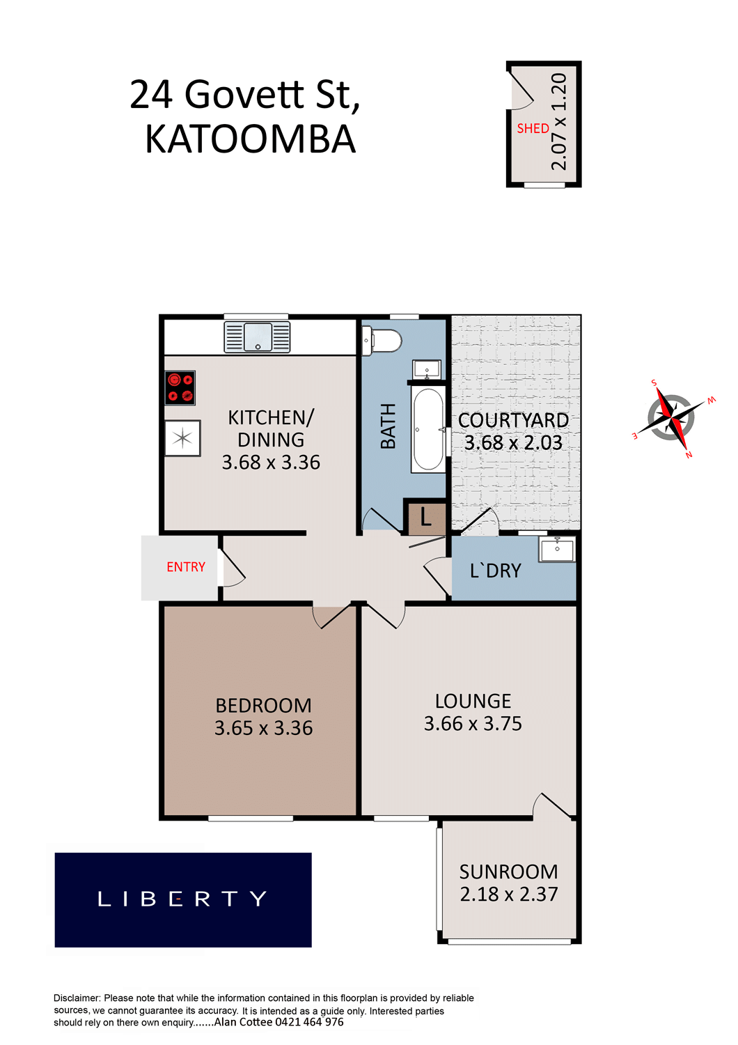 Accommodation comprises of a bright living room with adjacent sunroom/study, separate bedroom, eat-in kitchen, bathroom with bath/shower, renovated laundry and large grassed backyard taking advantage of the northerly sun almost all day long.