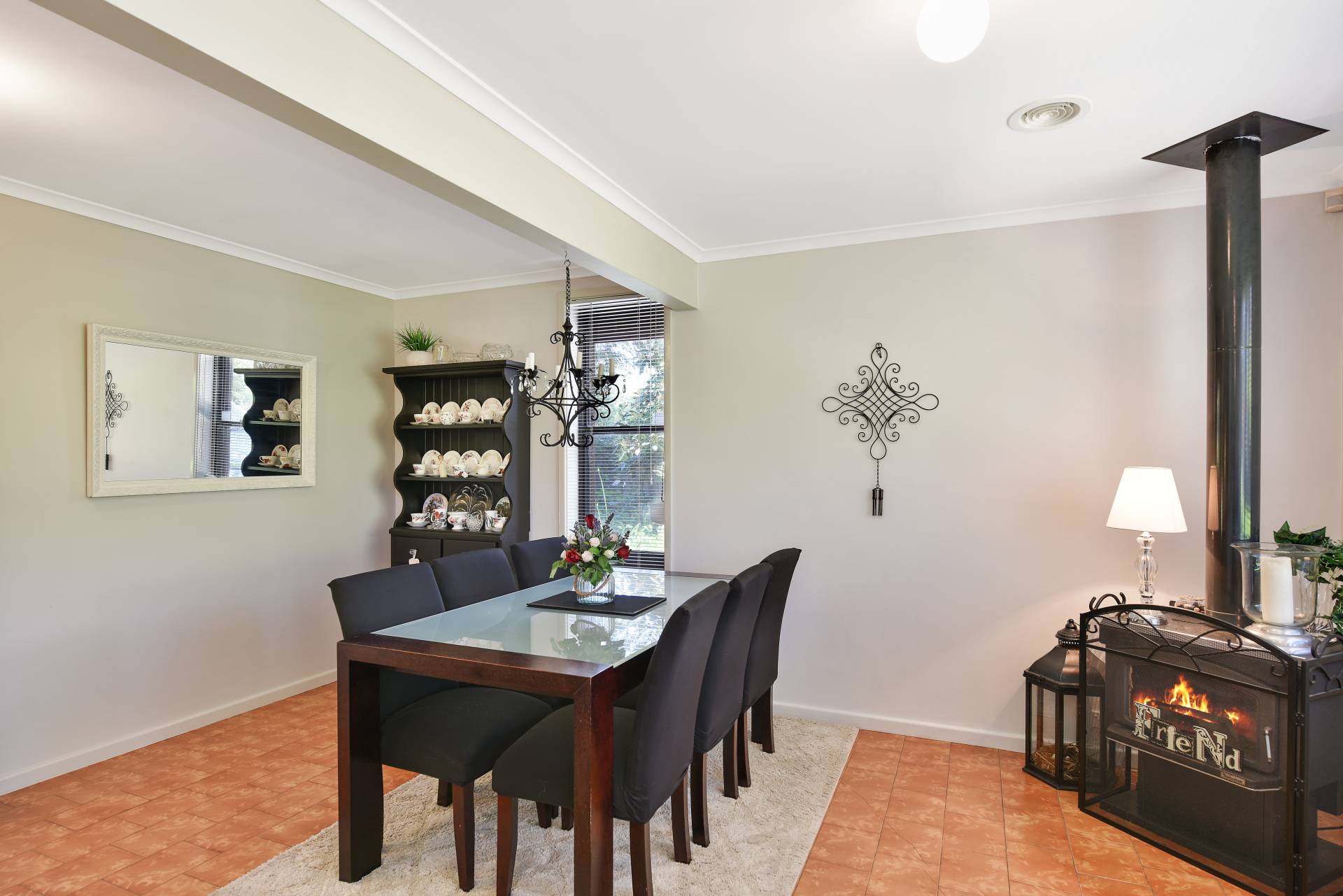 Downstairs consists of a spacious main bedroom with wall length built-in robes and nearby bathroom. The modern kitchen has plenty of storage and bench space and is situated between the elegant dining (with slow combustion fire) and lounge room. You will love the delightful sunroom looking through French doors to the cottage style gardens.