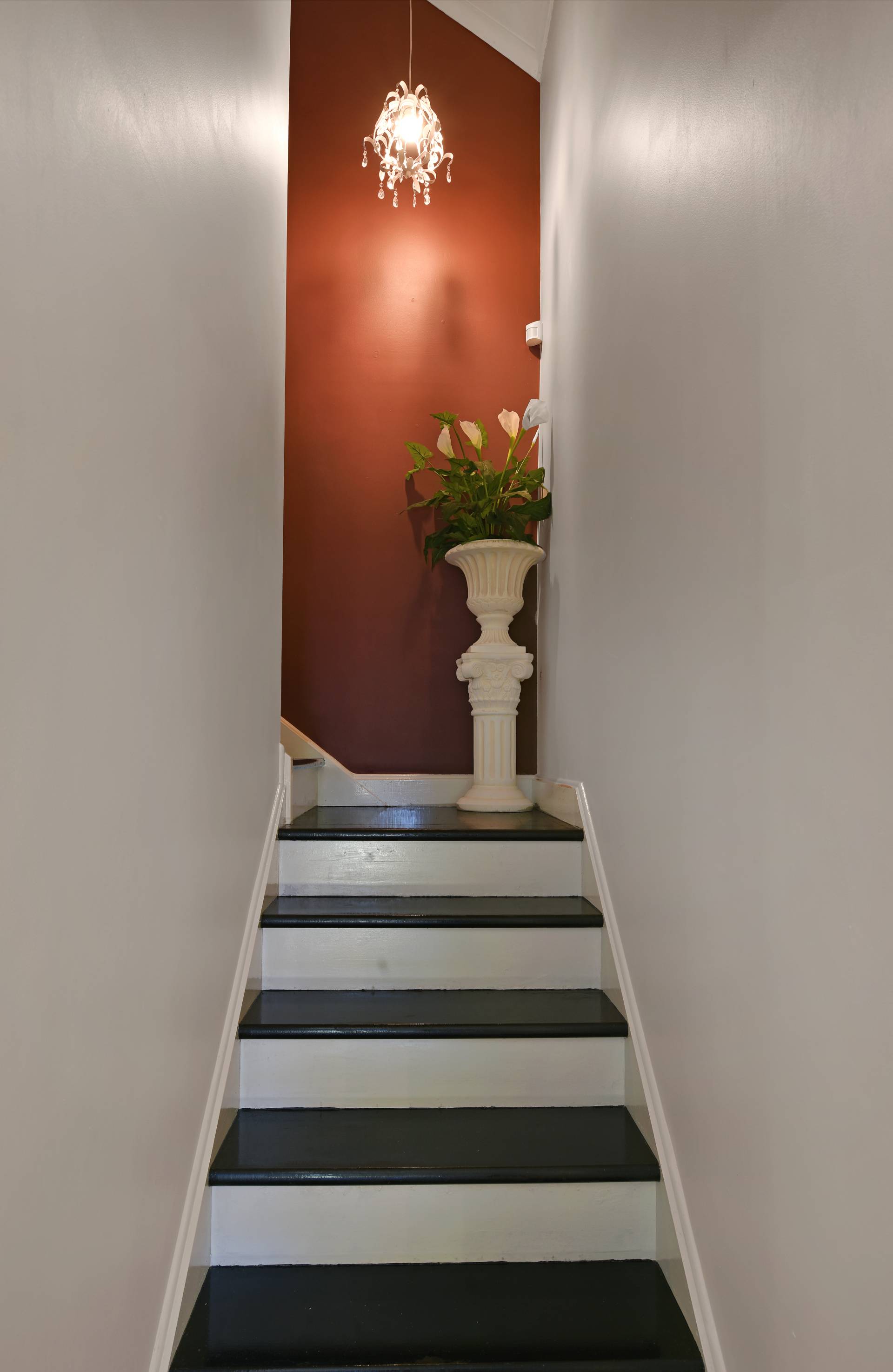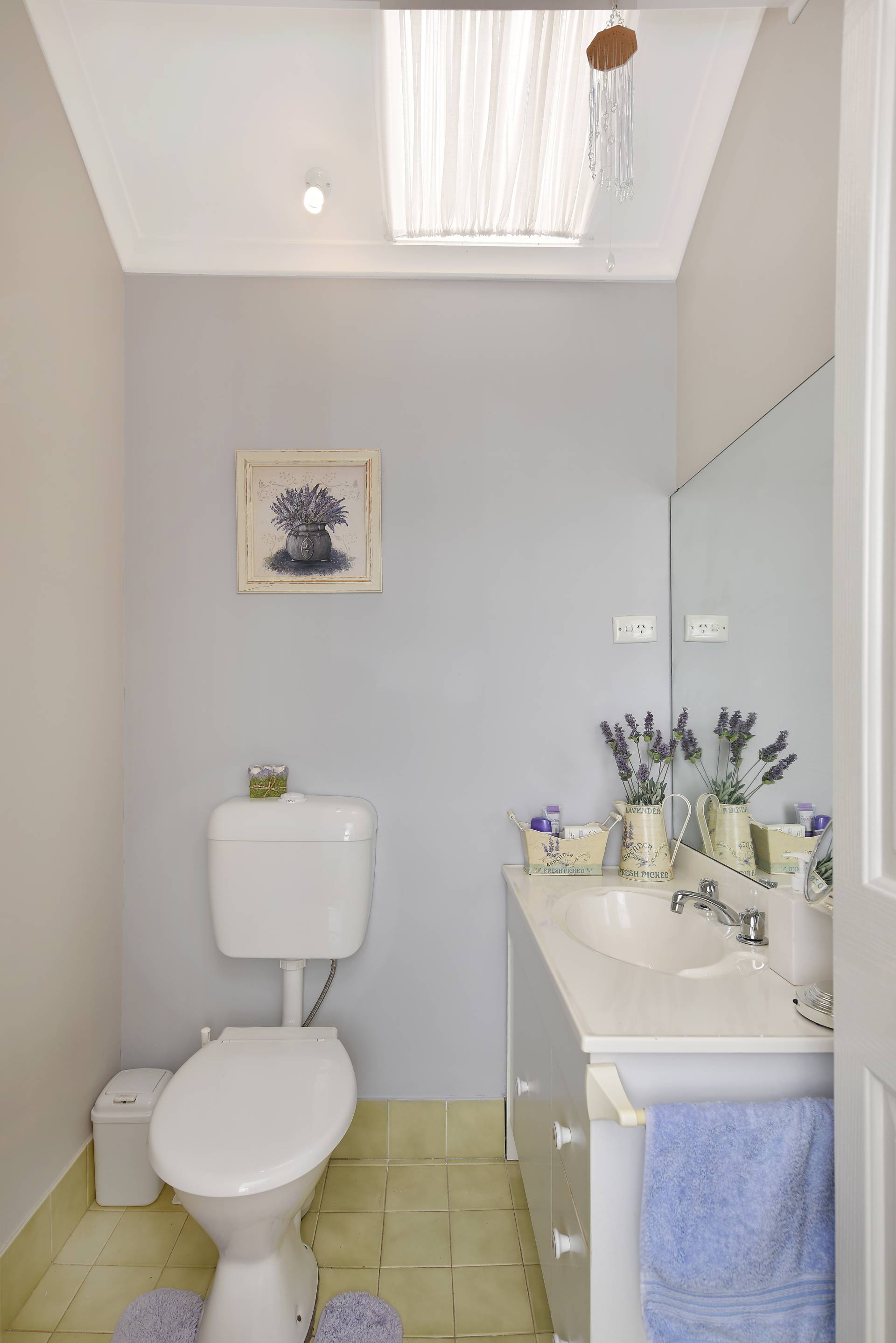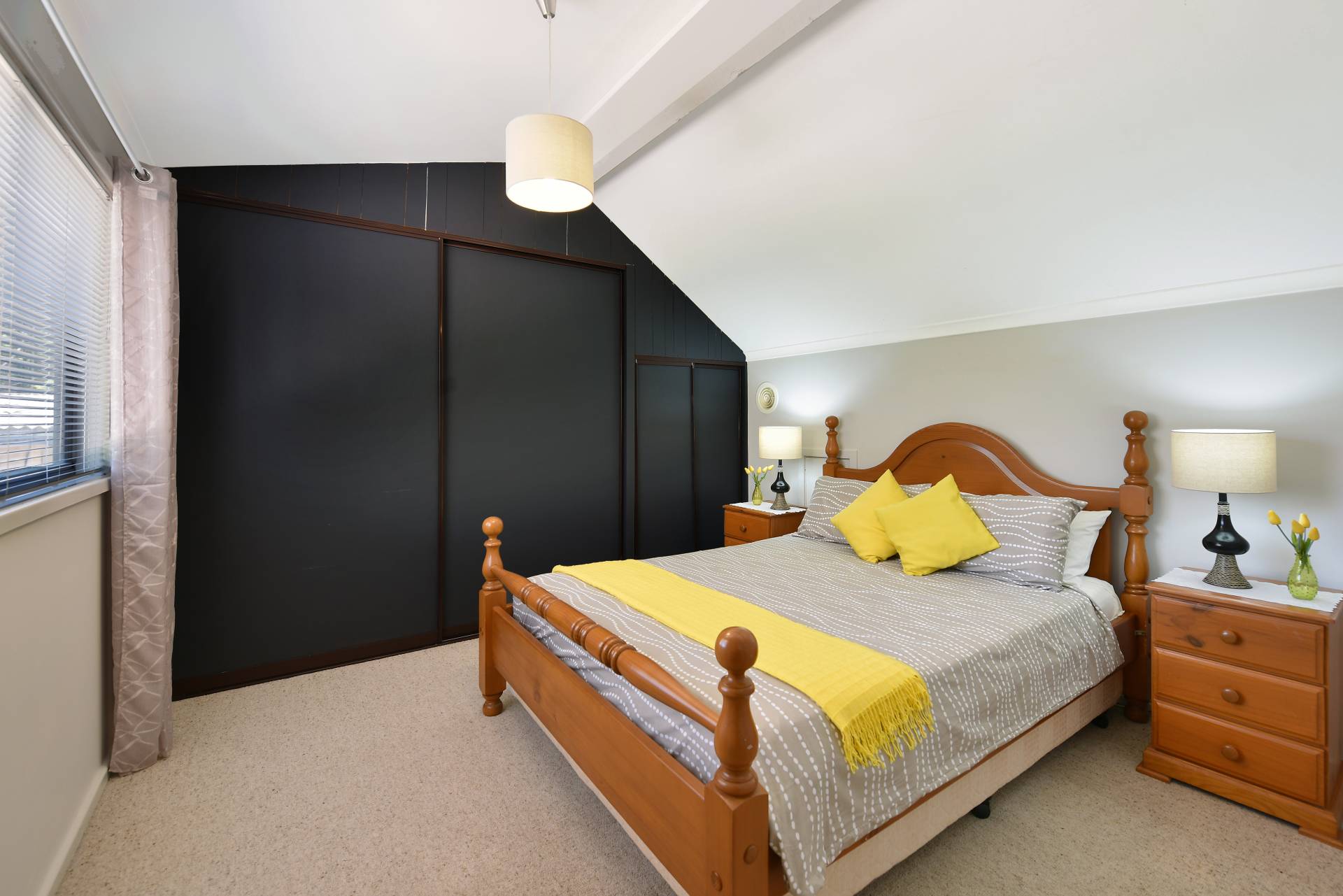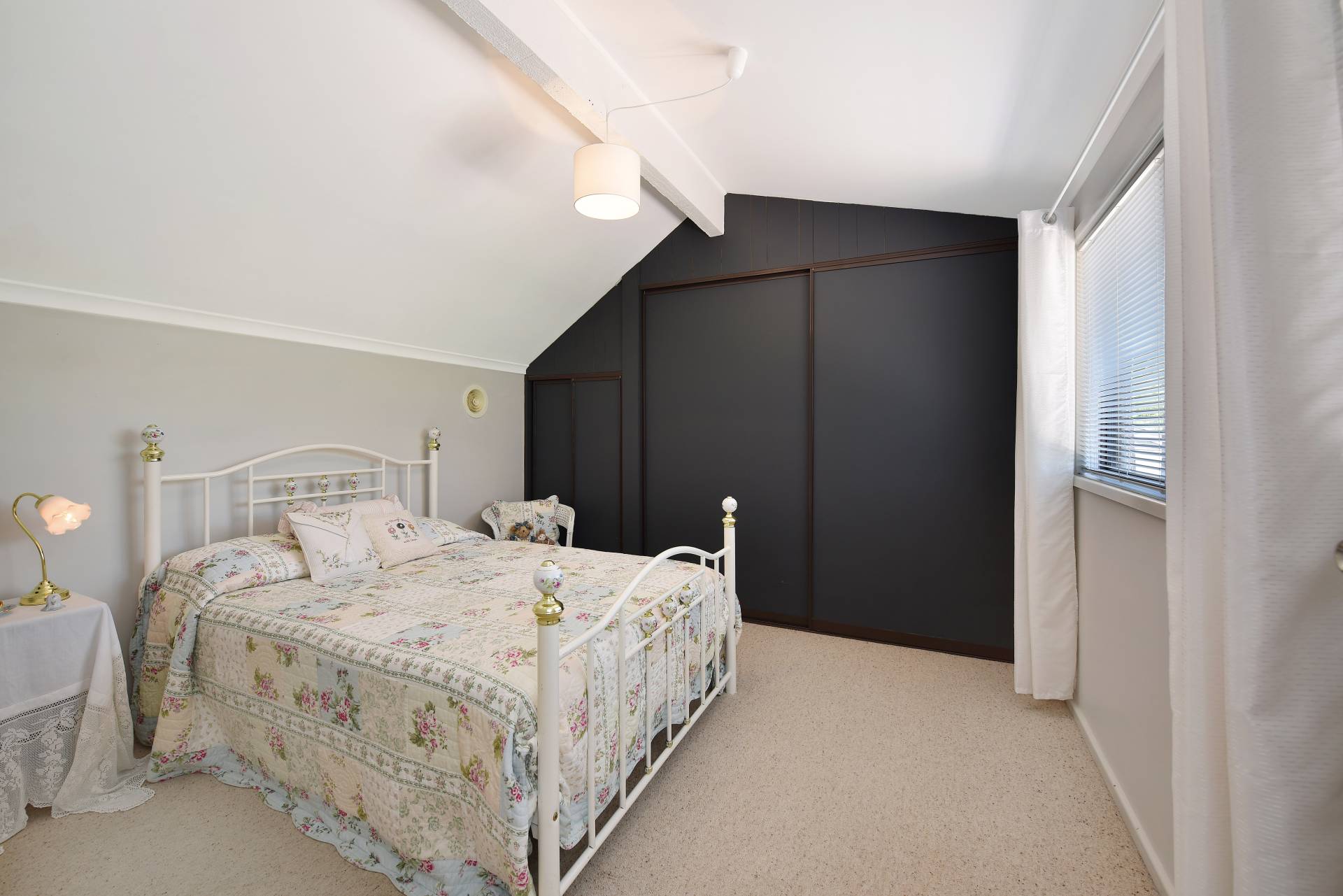Upstairs are two comfortable bedrooms with lofty ceilings and built-in robes, either side of a WC.
