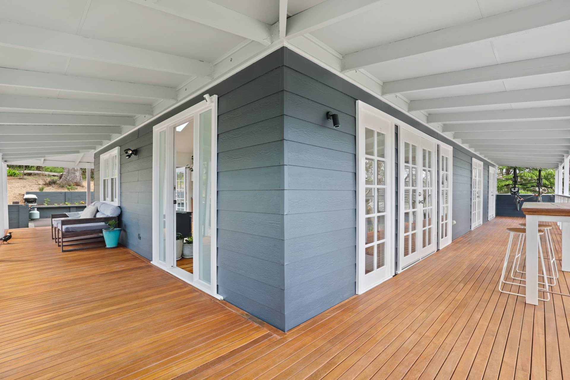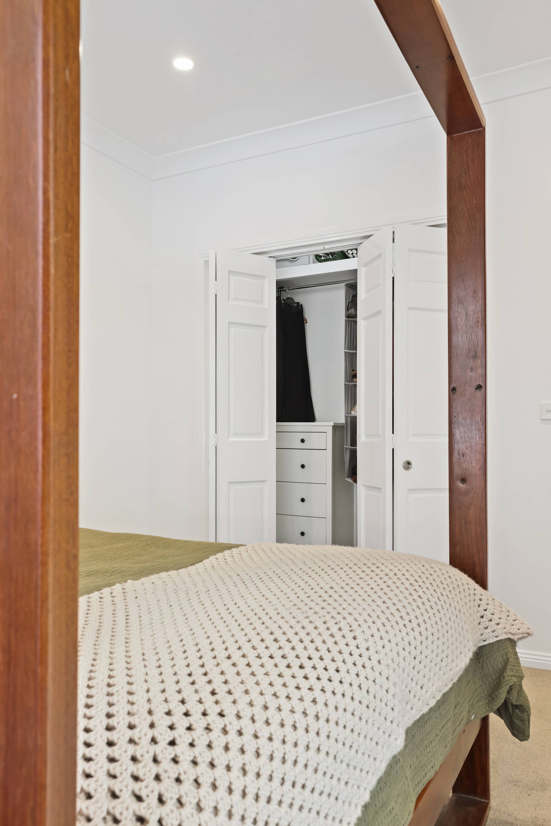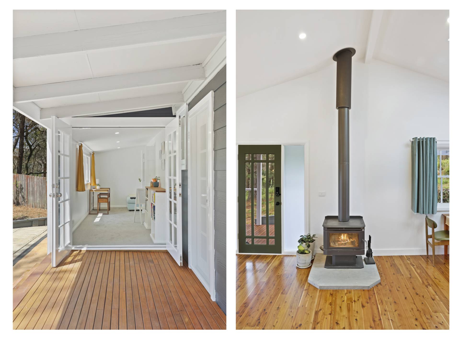 There are three generous bedrooms with BIR; two chic bathrooms; a sunroom that offers versatile uses; a laundry with heaps of storage; a large open living area under raked ceilings; and a deep verandah that wraps around three sides of the house with French doors opening onto it from multiple rooms.