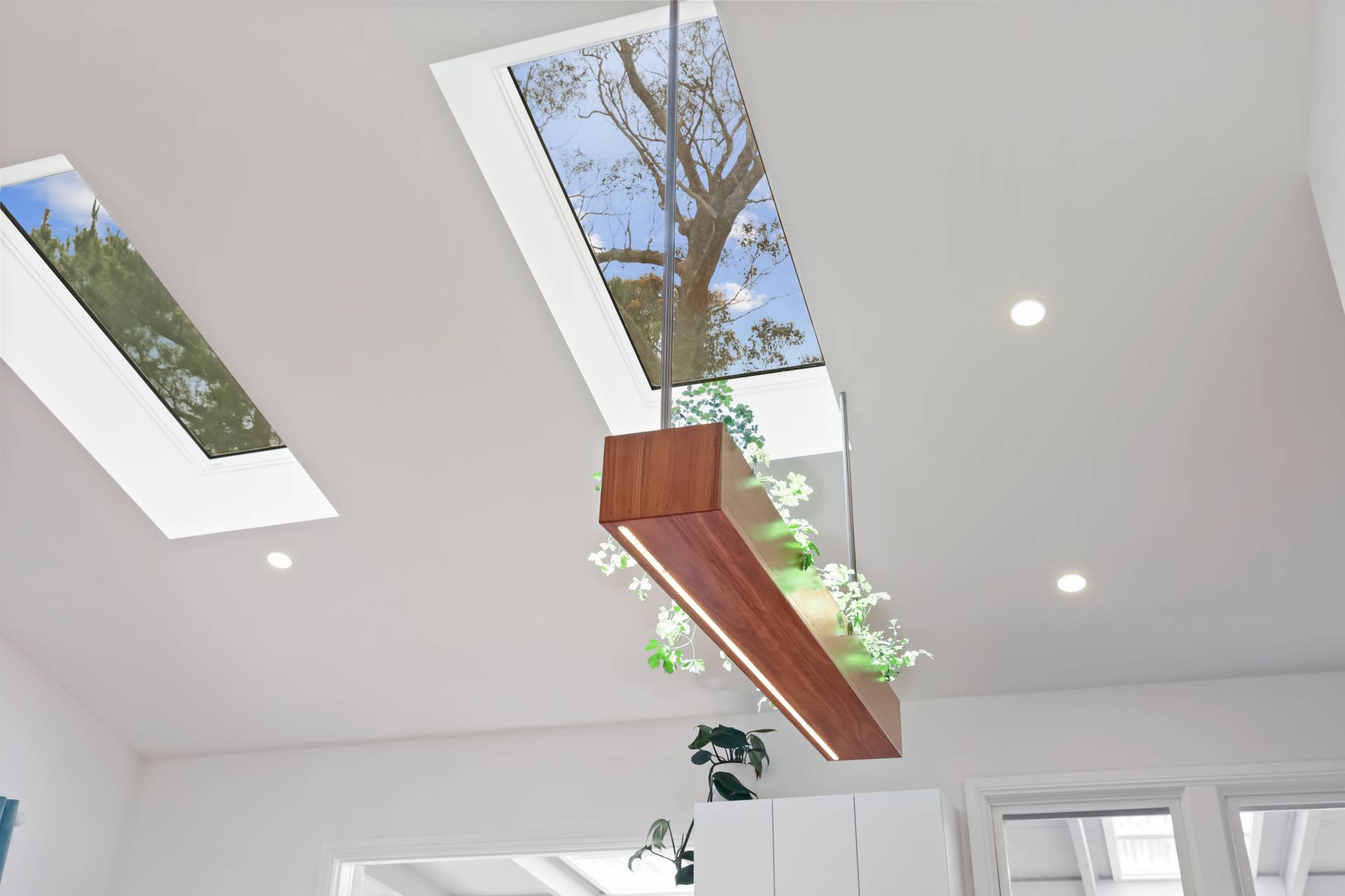 Even the placement of skylights is brilliant: above the island bench in the kitchen — with a hanging herb garden growing in the light; directly above the bath, so you can lie there at night and look up at the stars.
