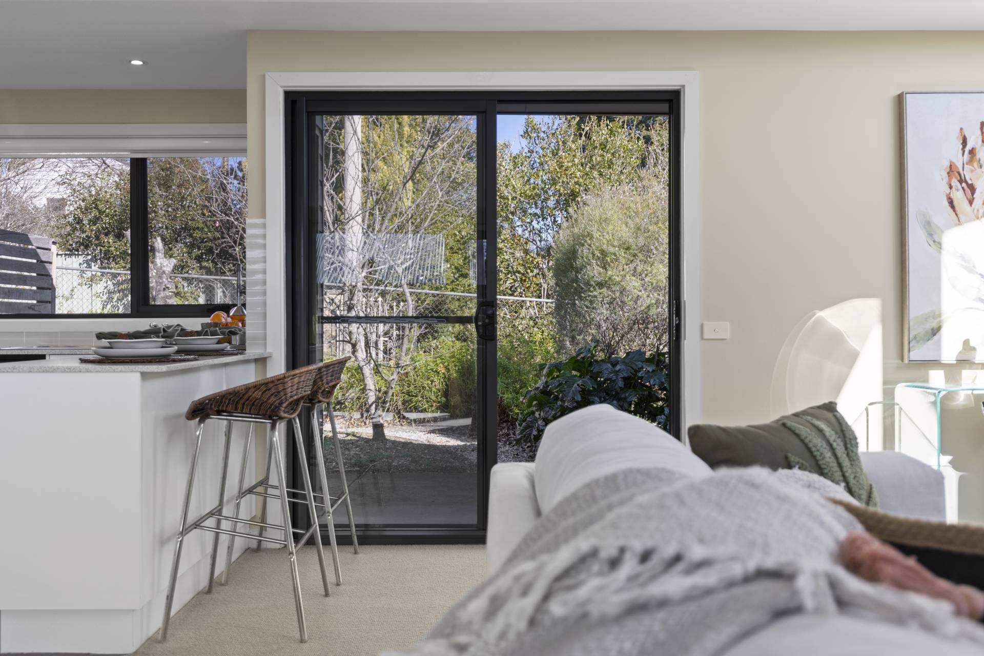 Modern and contemporary, this north facing home is privately and quietly tucked at the back of the block enjoying a leafy outlook from all windows.