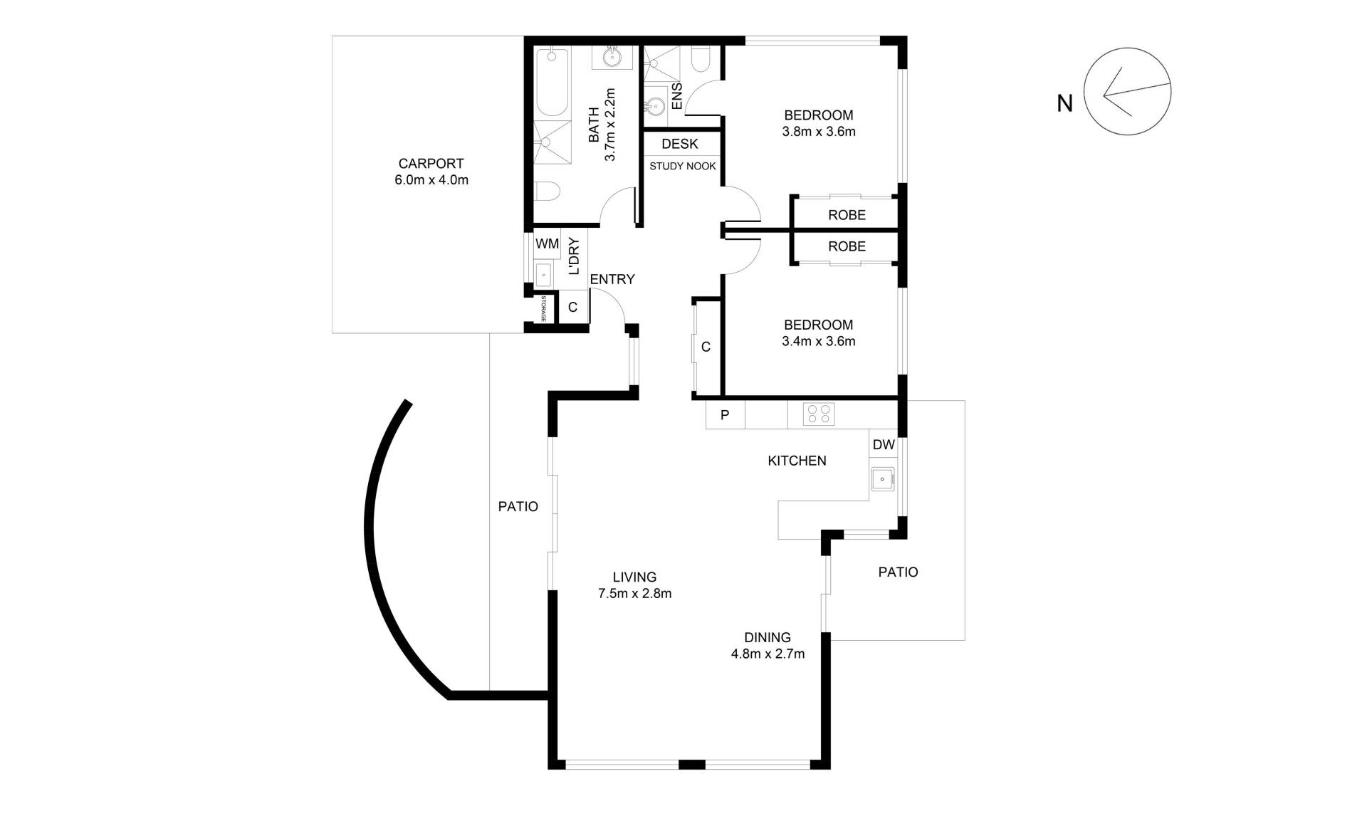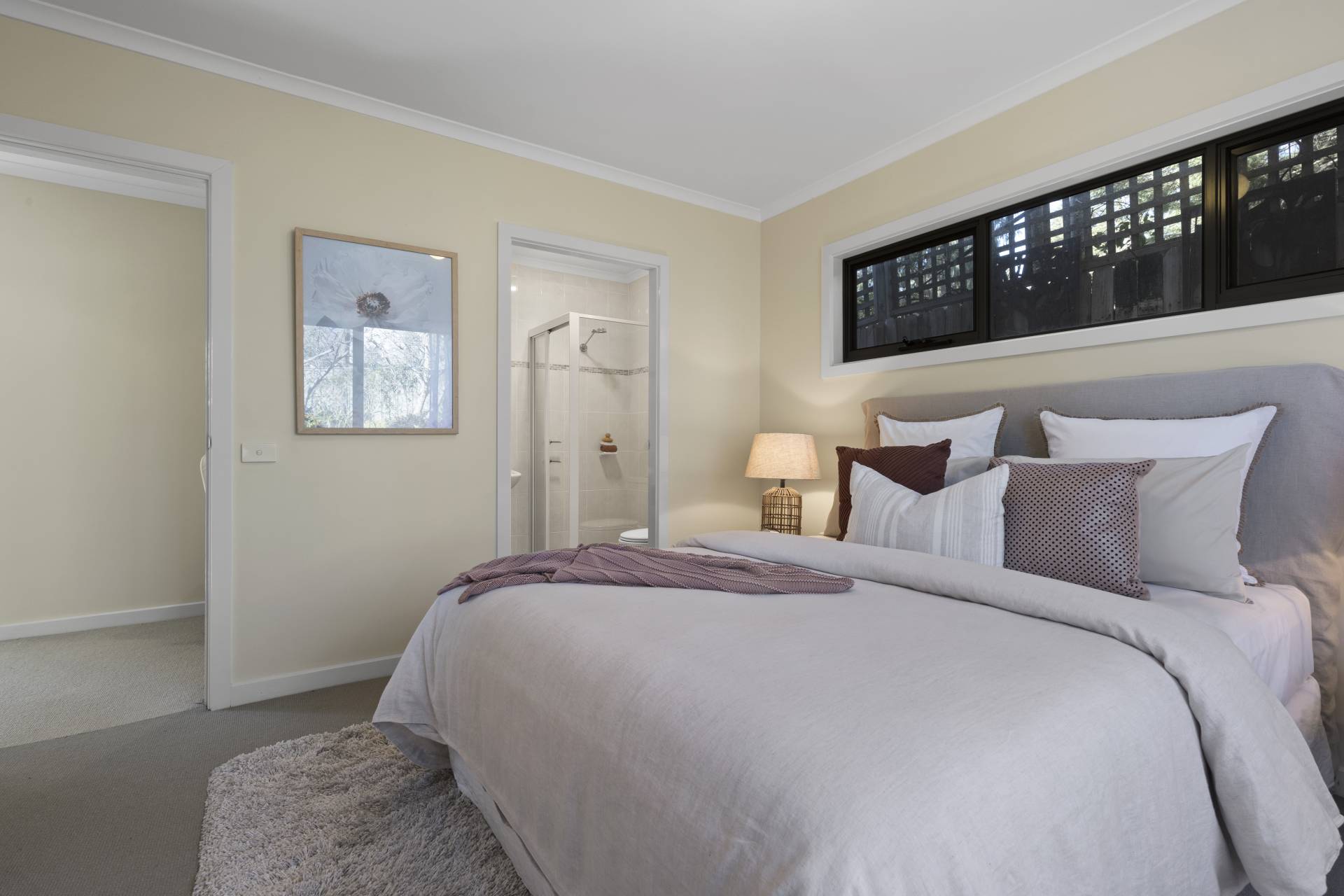 -    Two spacious bedrooms both with built-in robes, main bedroom benefits from an en-suite