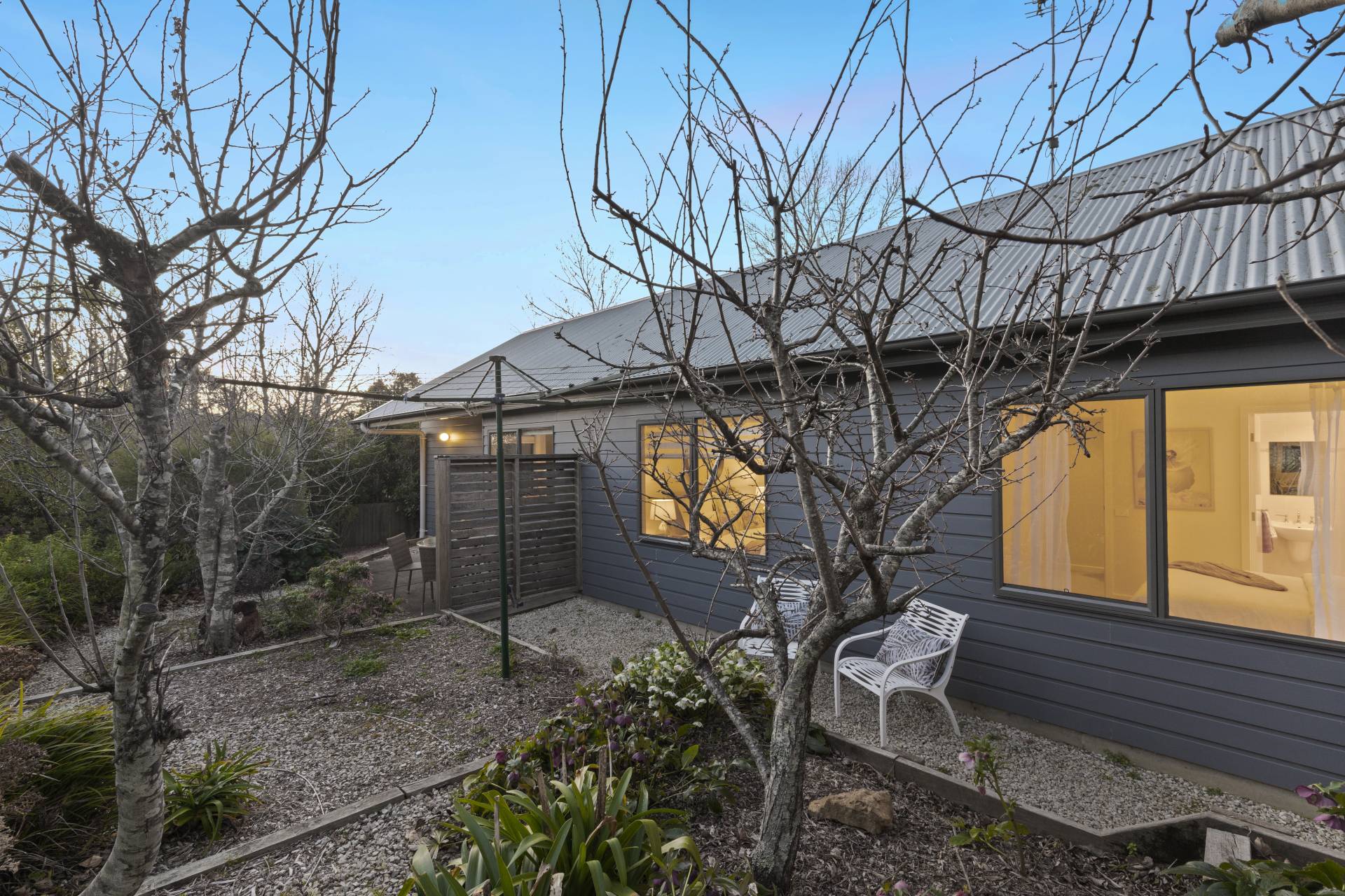 The rear yard is a great size and is set up in a way that’s perfect if you’re into permaculture. It currently features a series of paths and garden beds housing plum and apple trees to name a few.