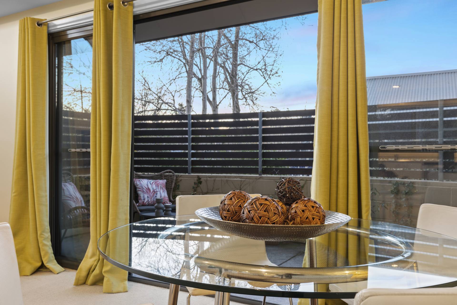 -    Floor to ceiling glazed doors either side of the living/dining leading to courtyards to both the north and south sides (amazing cross ventilation)