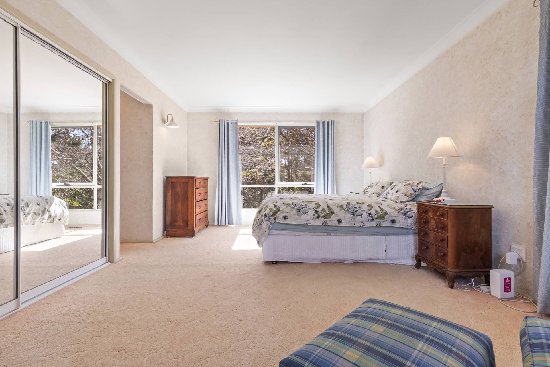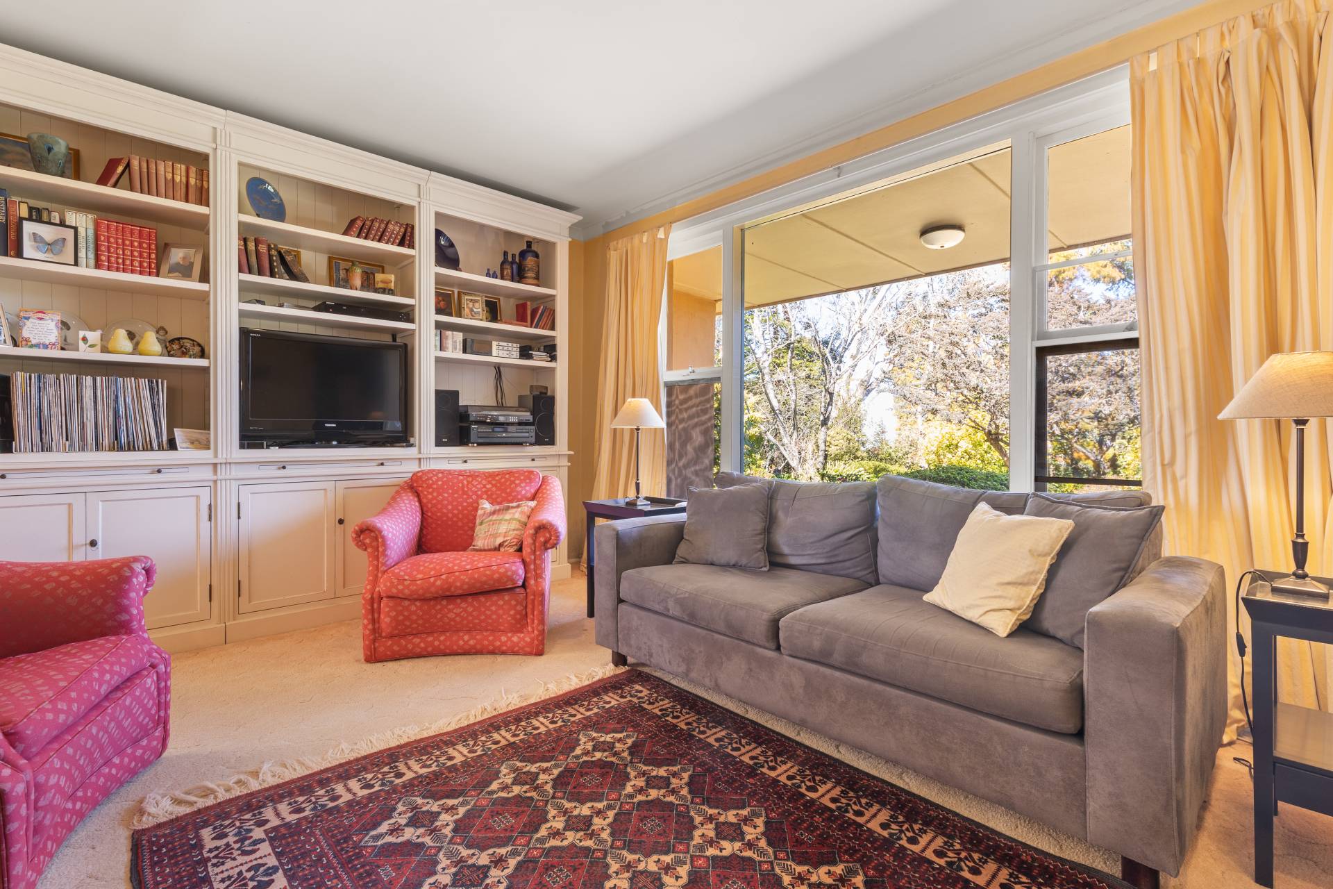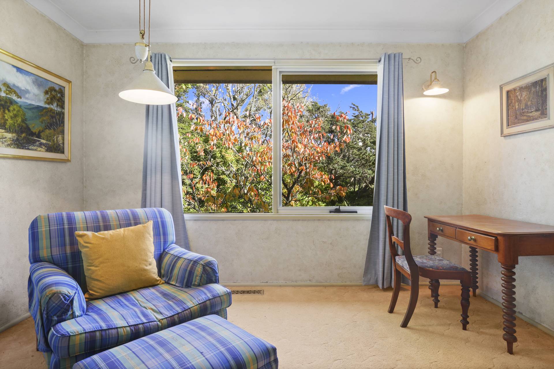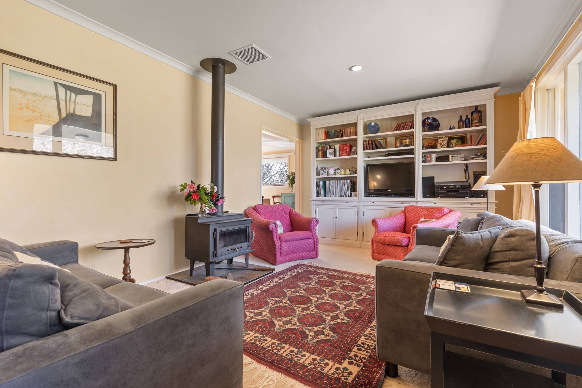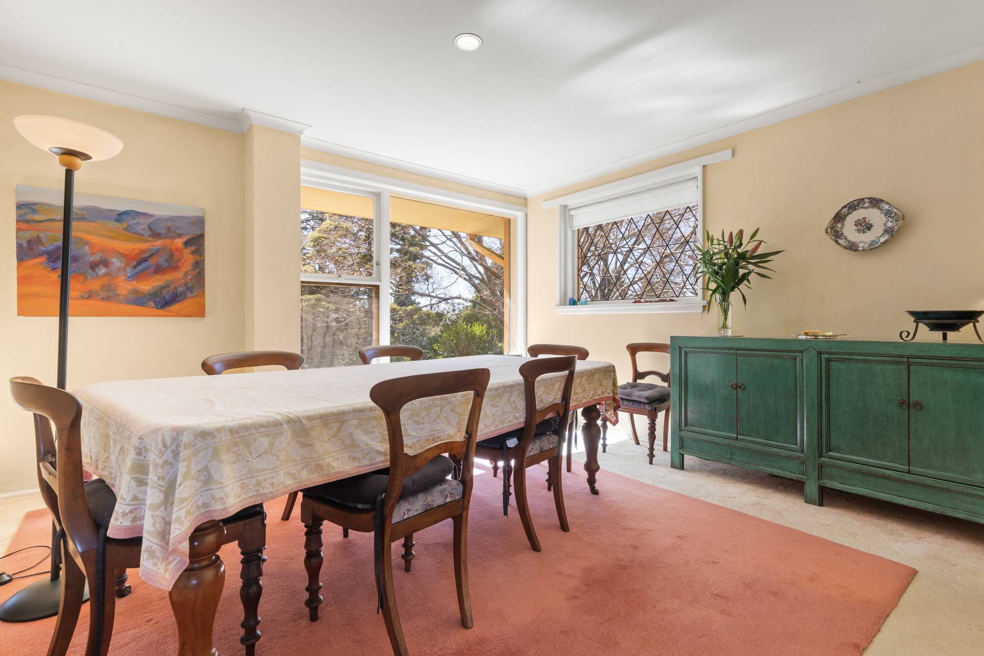 -    Spacious formal lounge, oversized windows, slow combustion fire, built-in joinery, views of Leura Golf Course