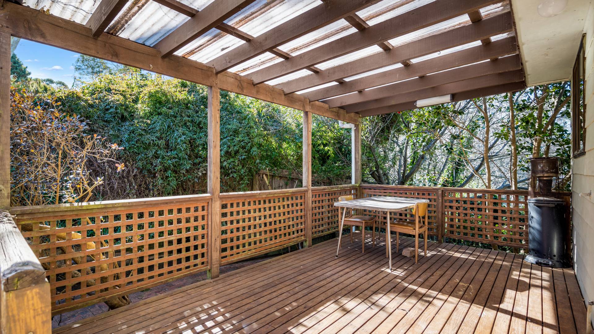 This charming property offers 3 bedrooms, main bedroom is north-facing with French doors leading to the rear deck.