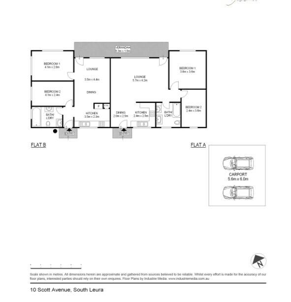 The home consists of 2 x 2br units both with one bathroom and a shared double carport.