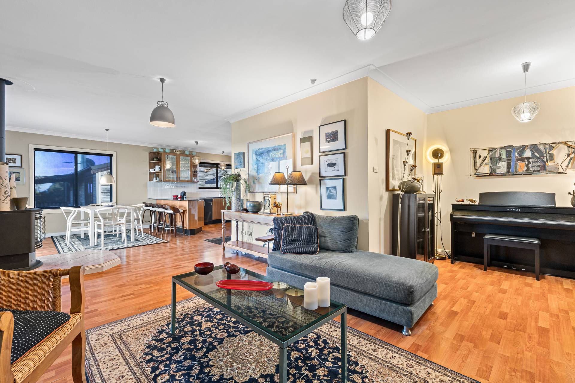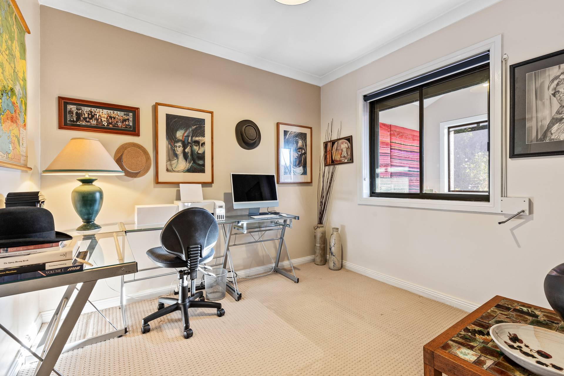 On entry into the foyer, the hallway takes you past a bedroom/office space through to the ample living areas: an L-shaped sitting room separates the formal dining from the casual dining and stunning modern kitchen. Both dining areas open onto the rear verandah.