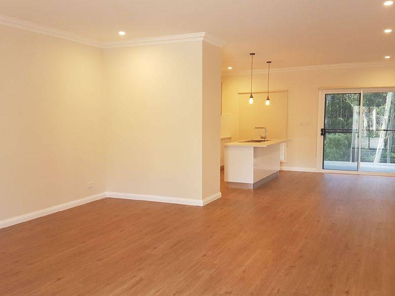 Modern & spacious three bedroom / two bathroom duplex.  Oversized open plan living / dining / kitchen opening onto a covered rear deck overlooking a beautiful bush block, timber floors, sheer and block-out roller blinds throughout.