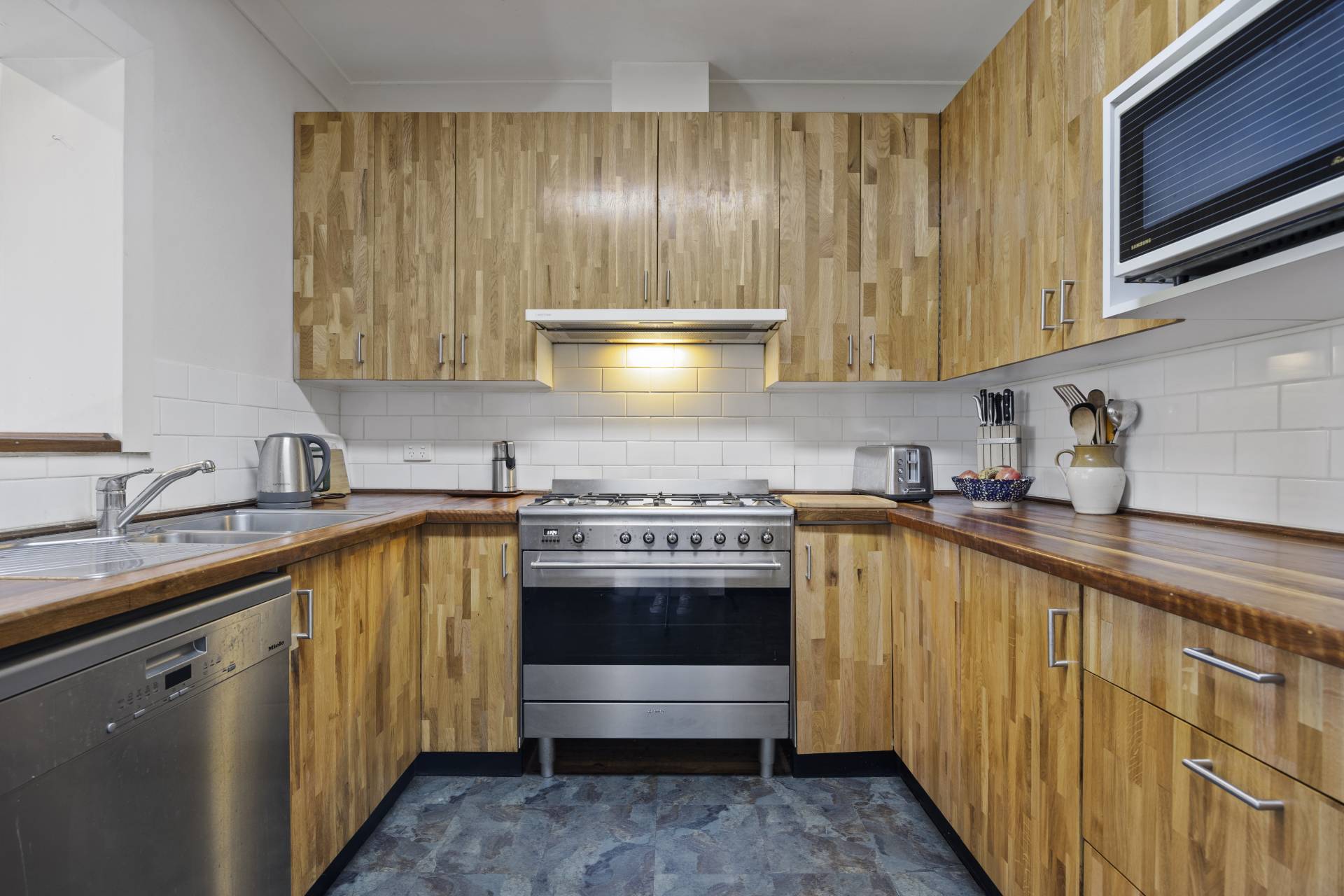 The beautifully appointed ground floor kitchen features a 90cm Smeg gas cooktop and electric oven, a Miele dishwasher, and plenty of cupboard space. There is also a generous kitchenette on the first floor with electric stove and garden views.