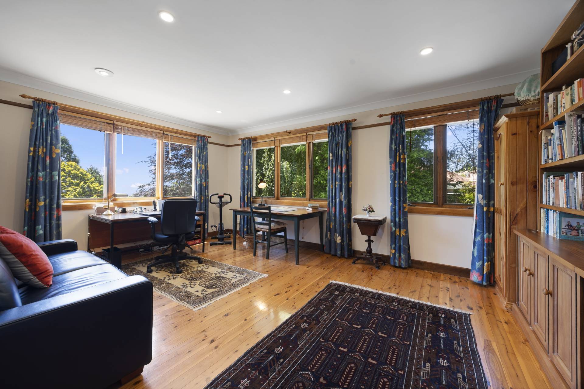 There are multiple living areas. Formal and informal dining rooms. Three bathrooms. Three lock up garages.  A Wine Cellar. A generous workshop area. Even a dedicated hobby room.