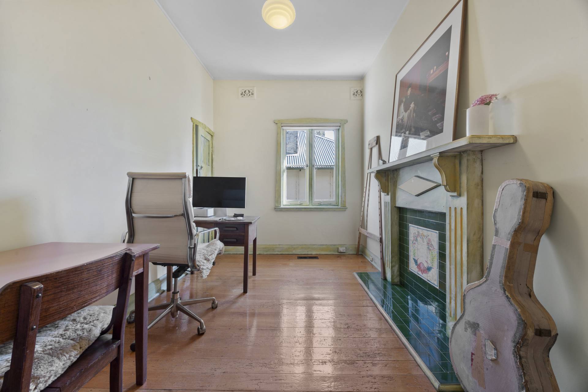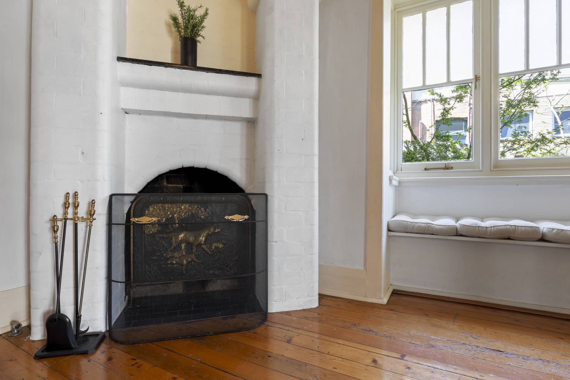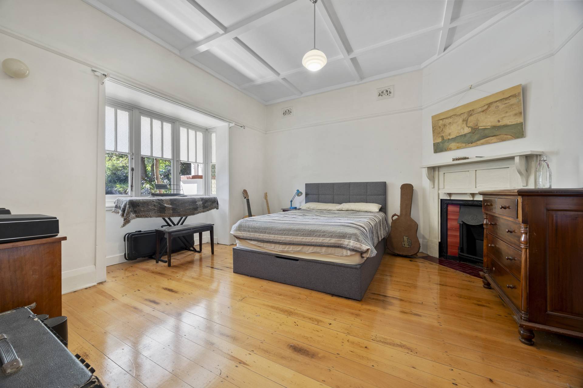 -    Good sized third bedroom with decorative fireplace and built-in robe