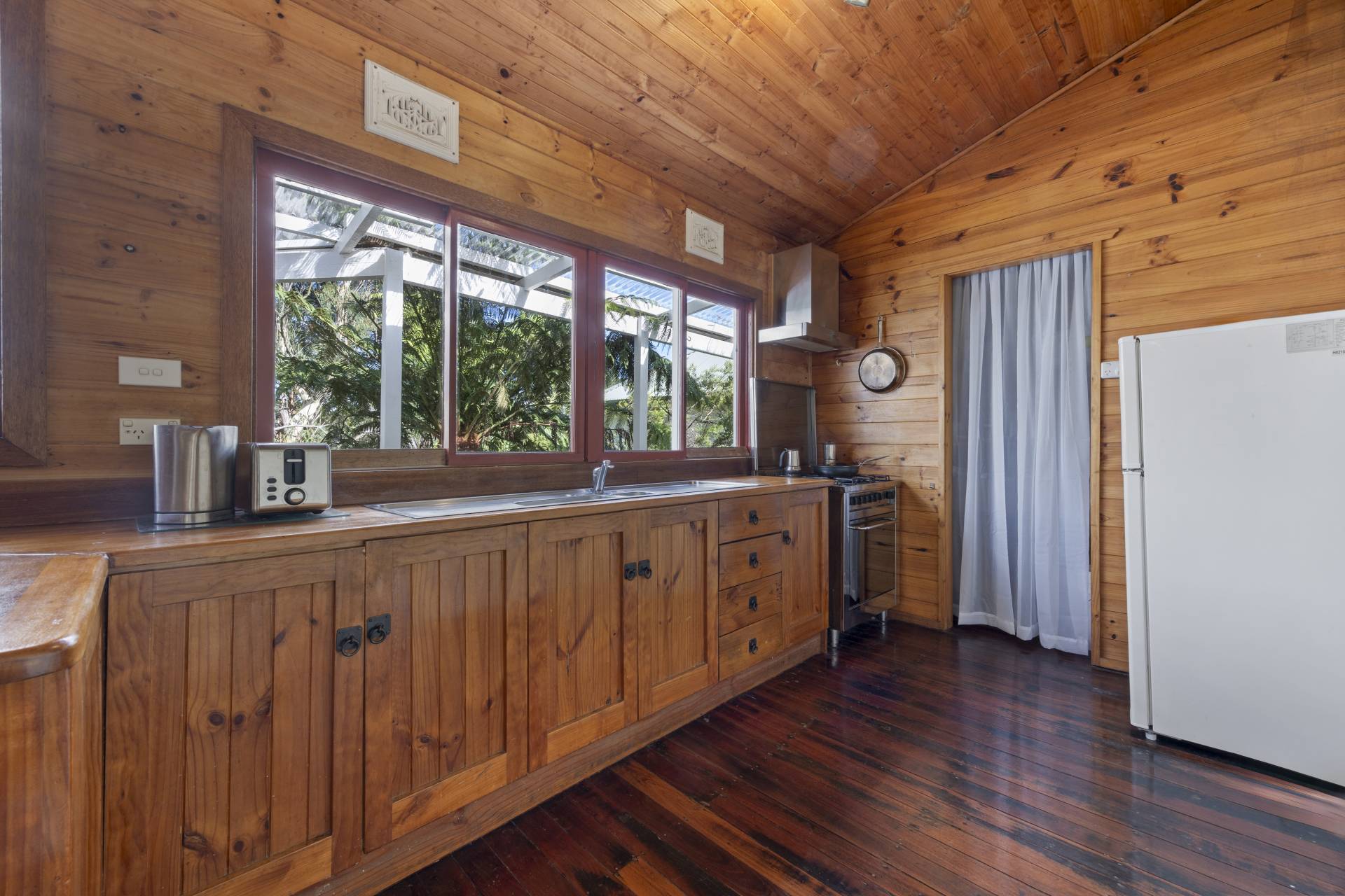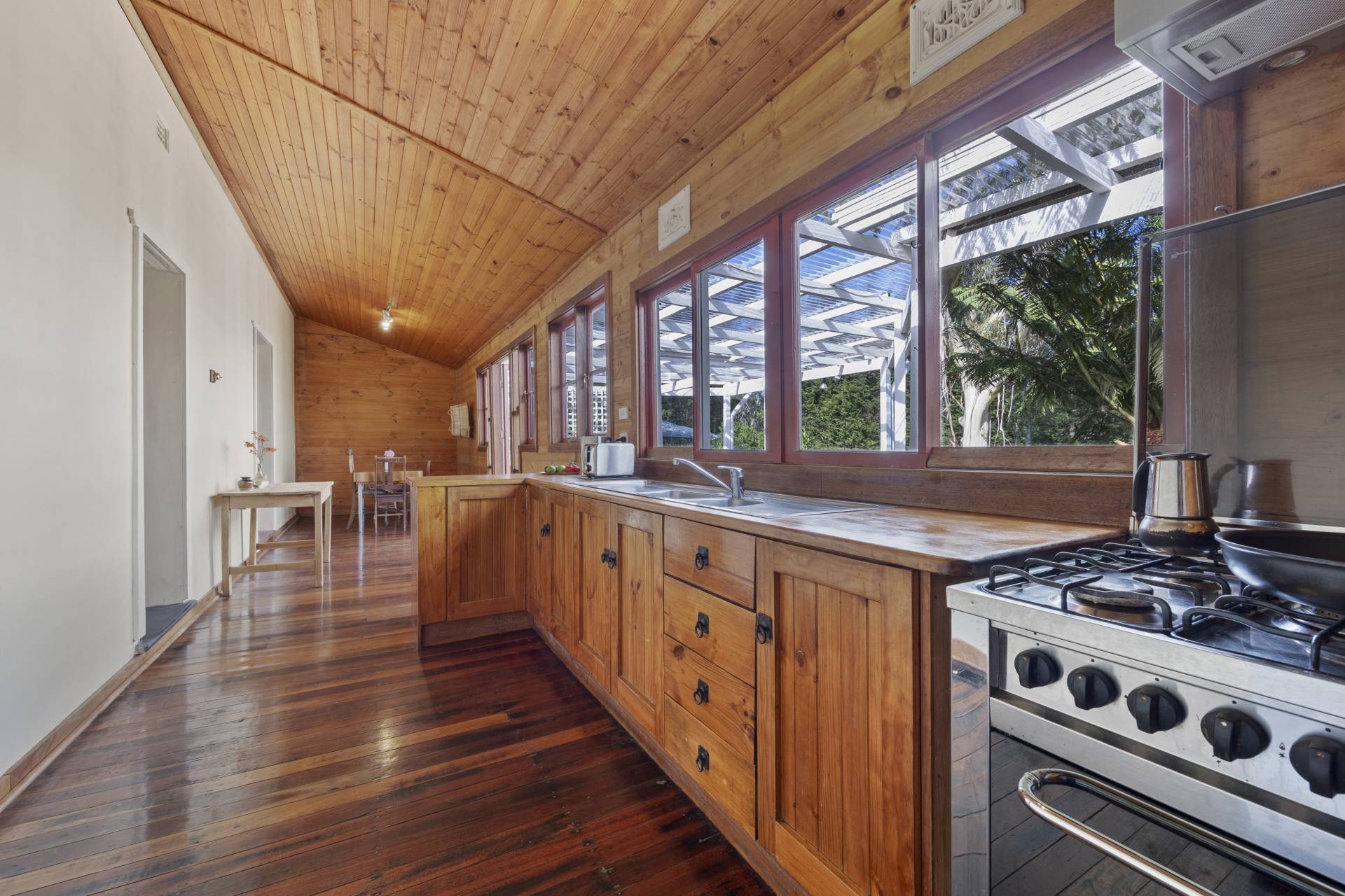 -    Country style timber kitchen with gas cooking and pantry