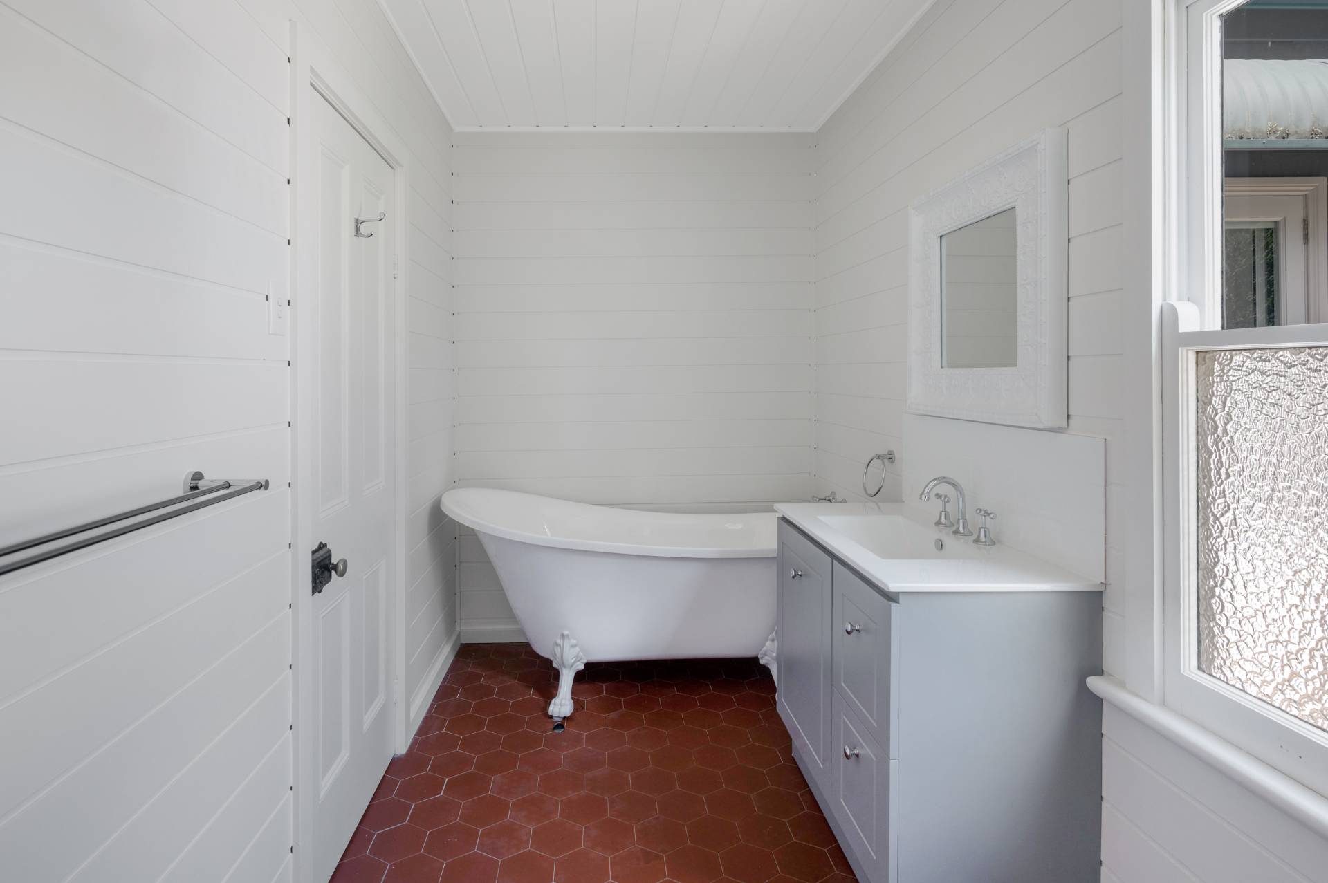 The home combines the traditional weatherboard cottage features of high ceilings, timber benchtops, floorboards and finishes plus a slow combustion fireplace and beautifully blends with the modern conveniences of central heating, reverse-cycle air-conditioning and ceiling fans.