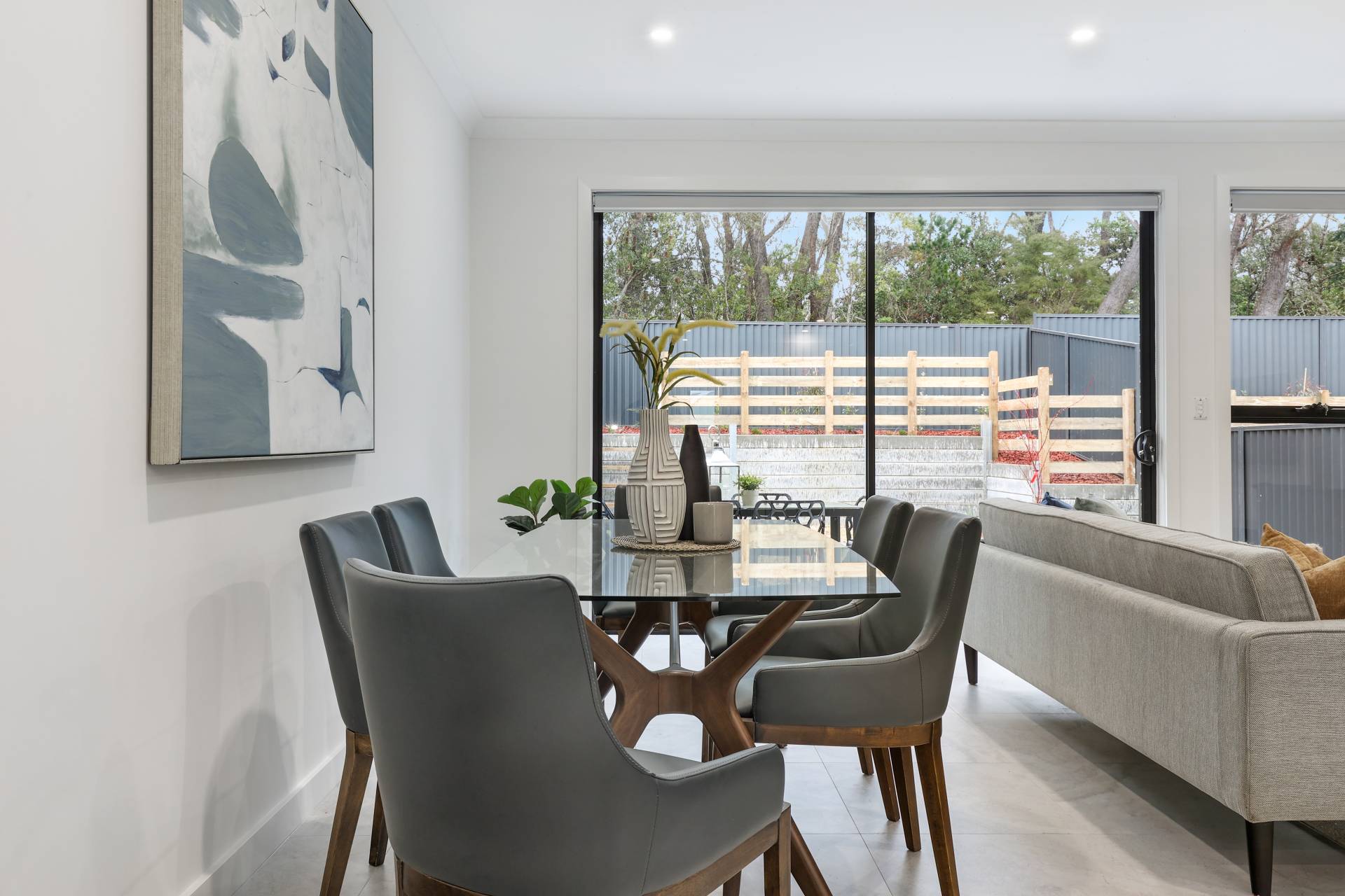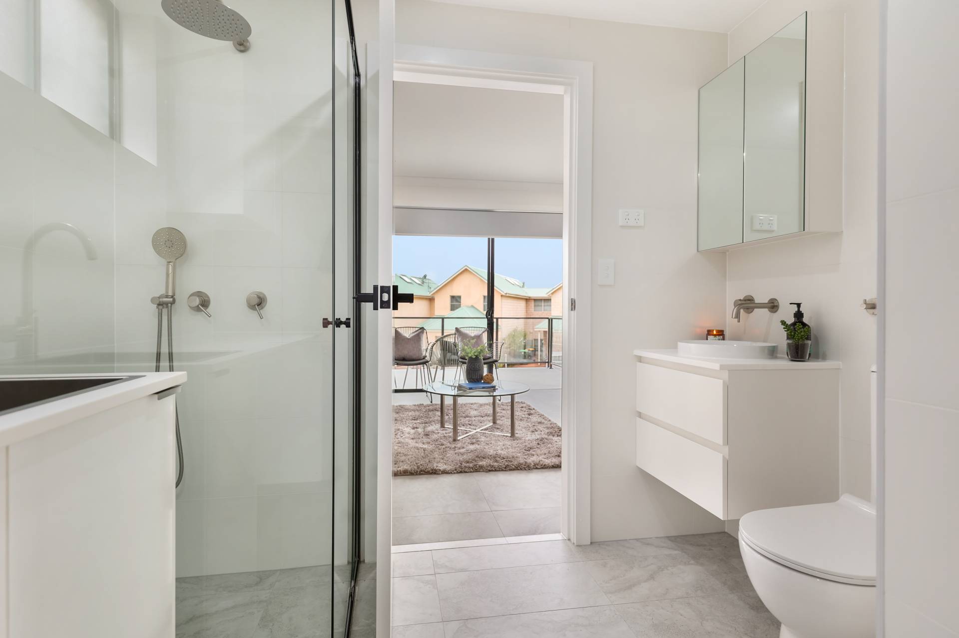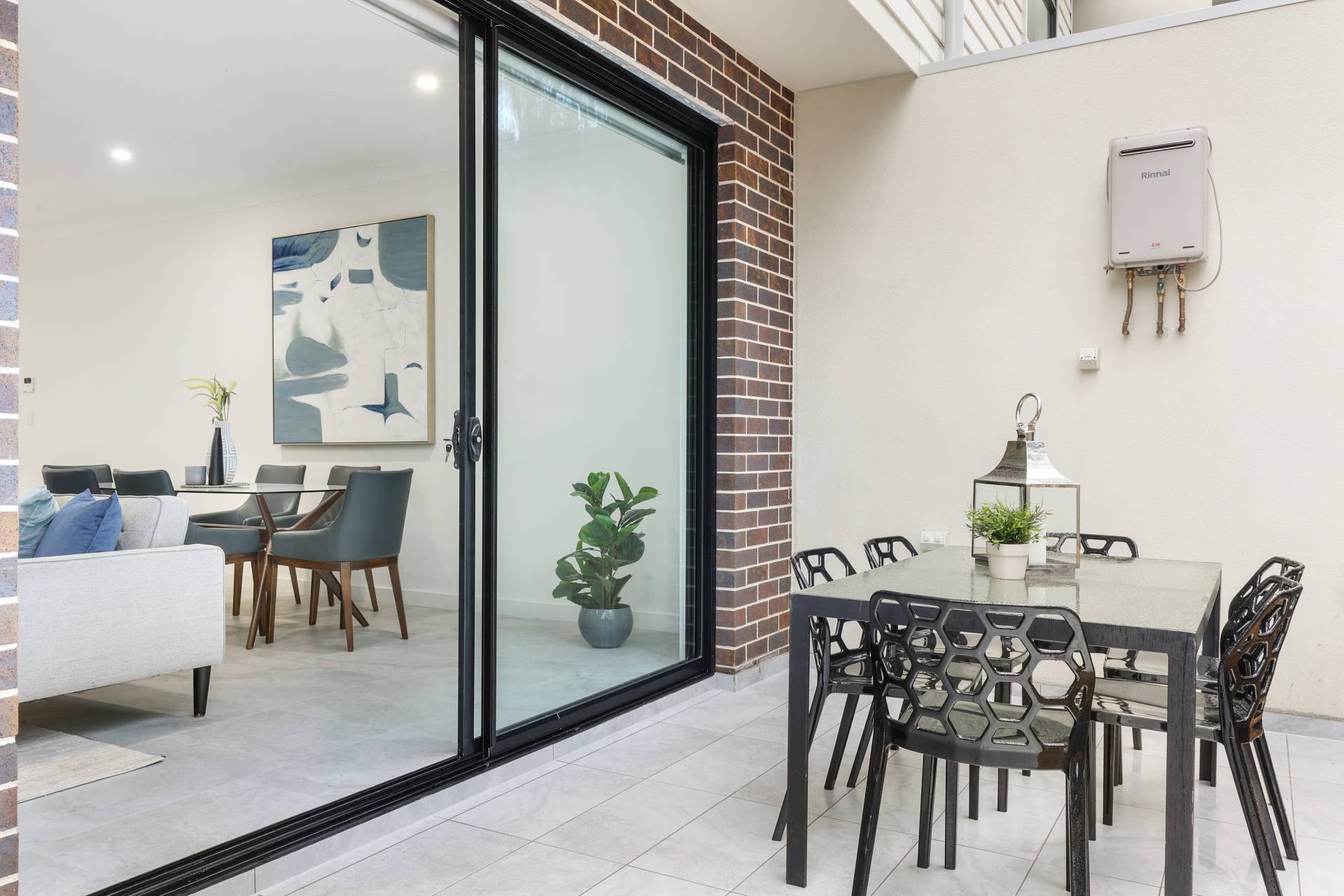 -    Floor to ceiling glazing flows onto an alfresco area and a small patch of lawn