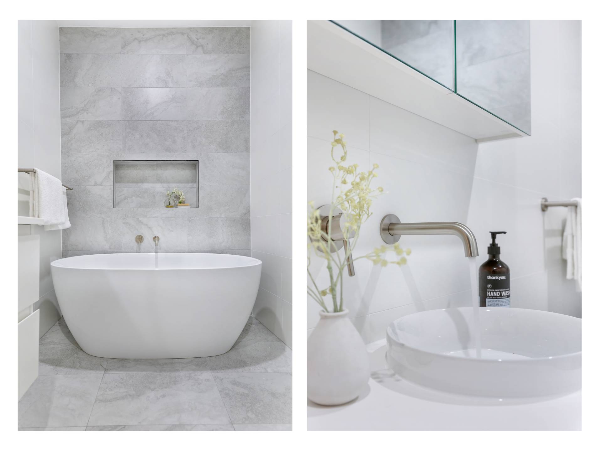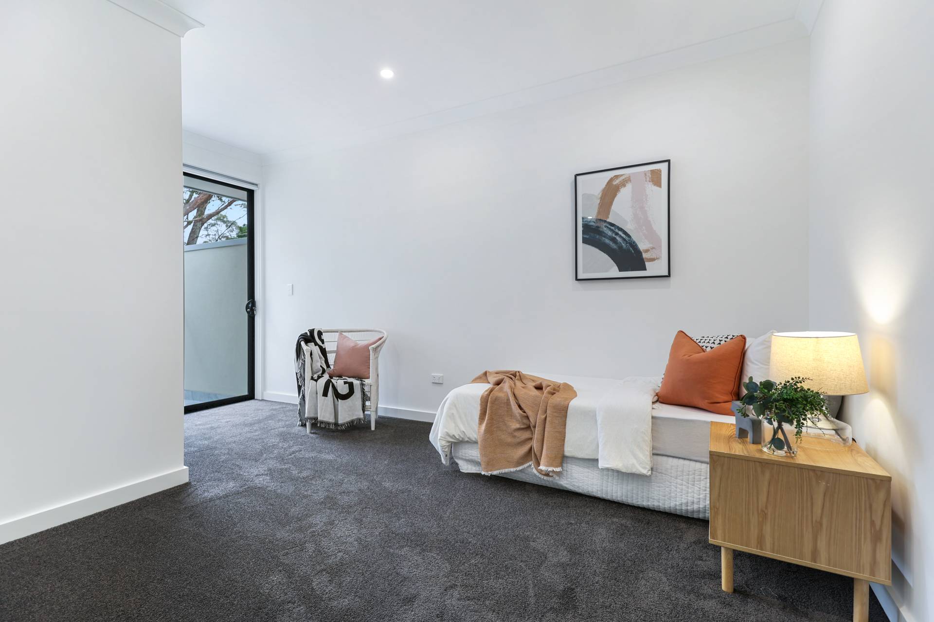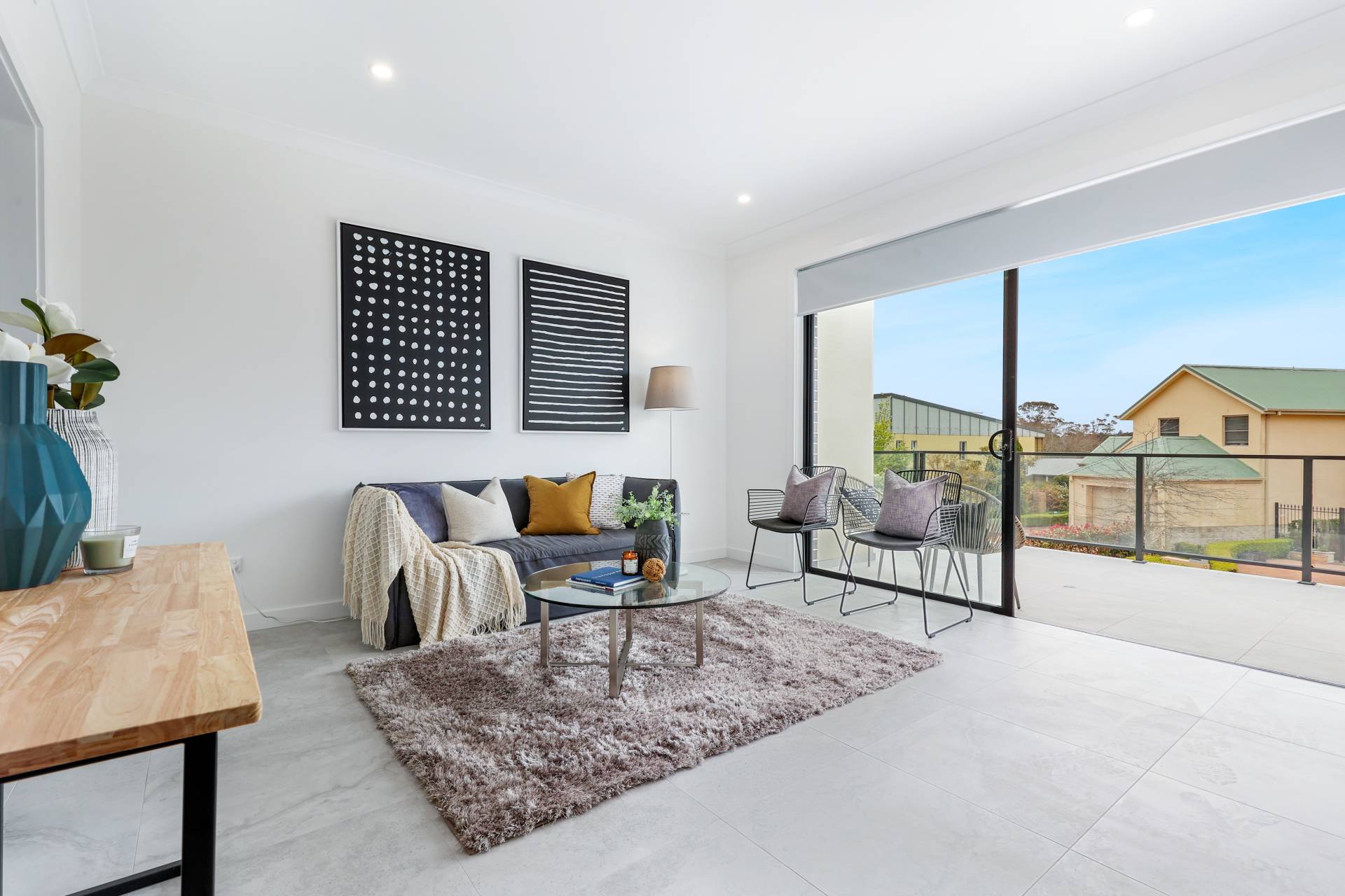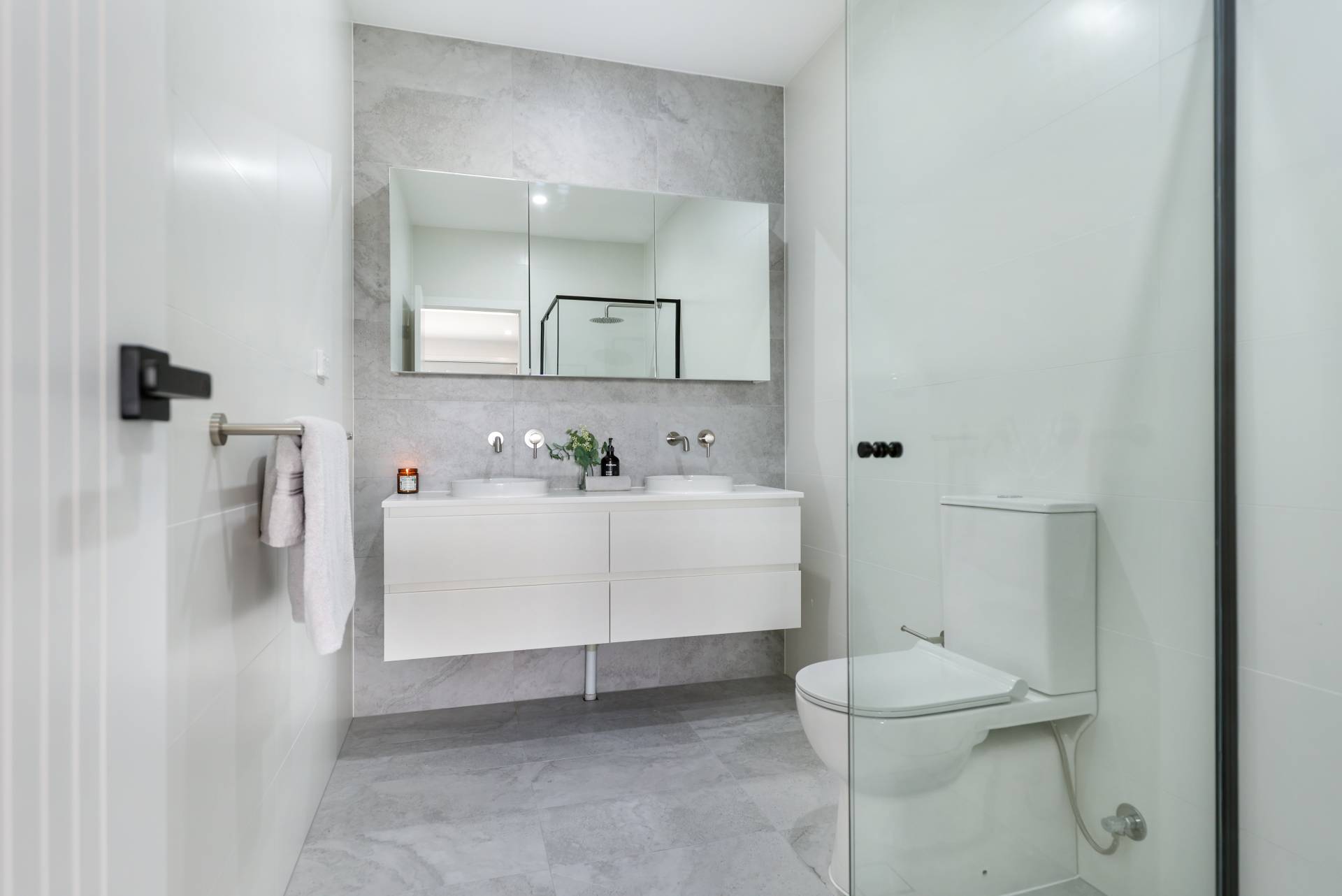 -    Floor to ceiling glazing flows onto an alfresco area and a small patch of lawn