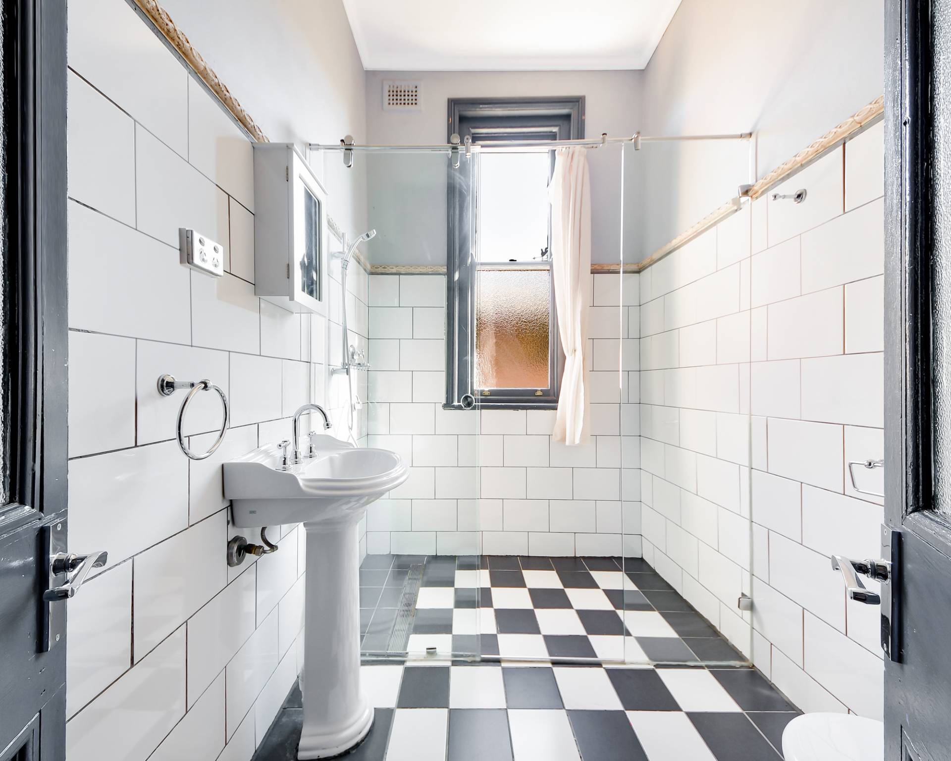 • period-style bathroom with an over-sized shower
