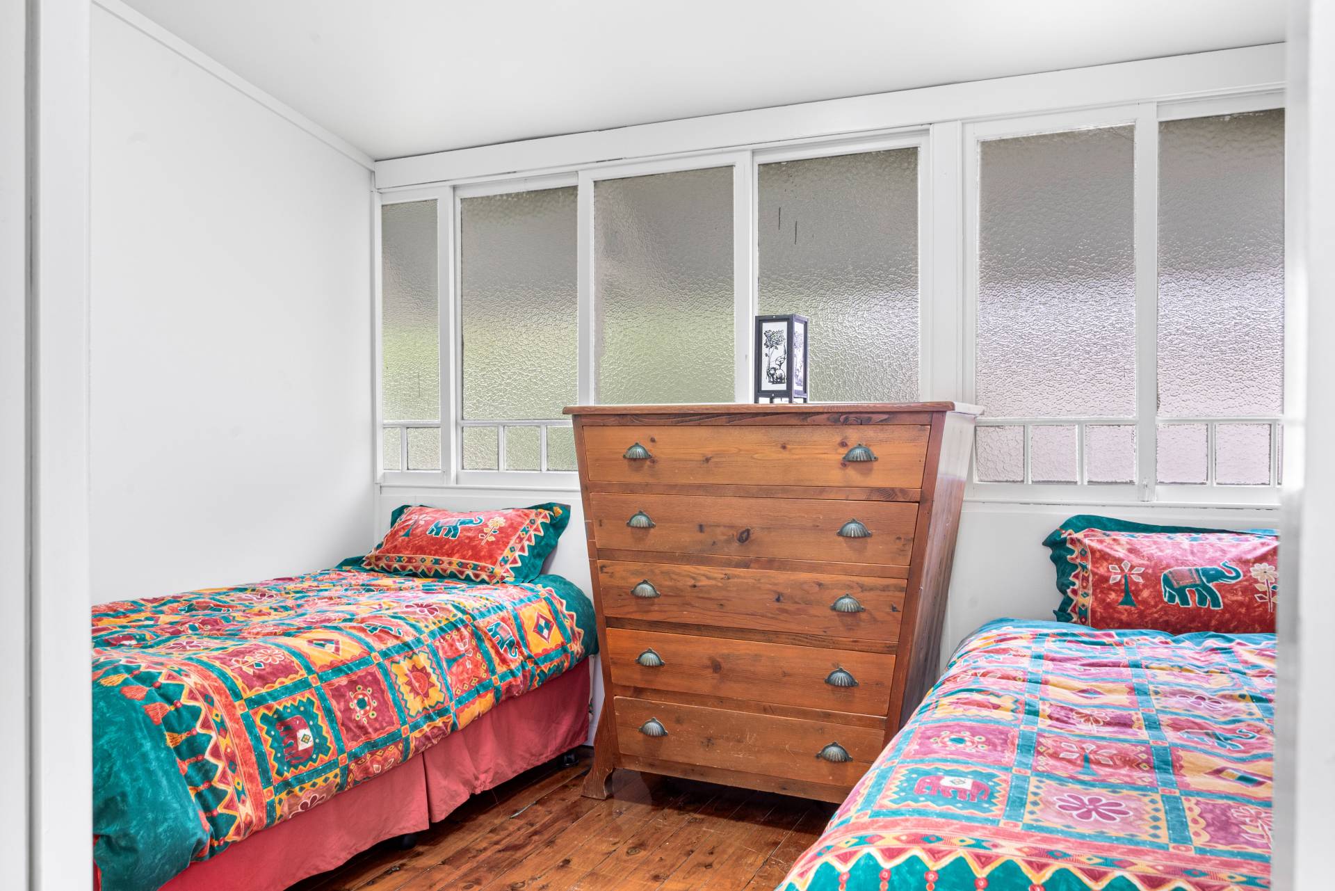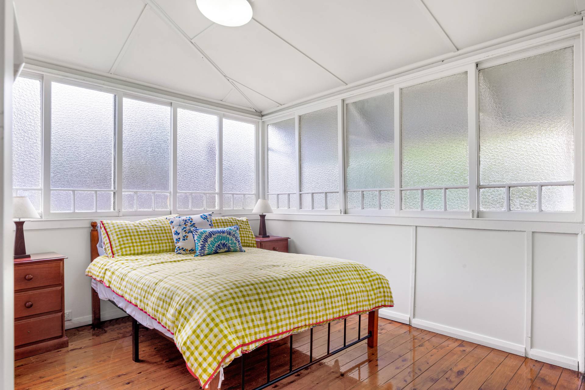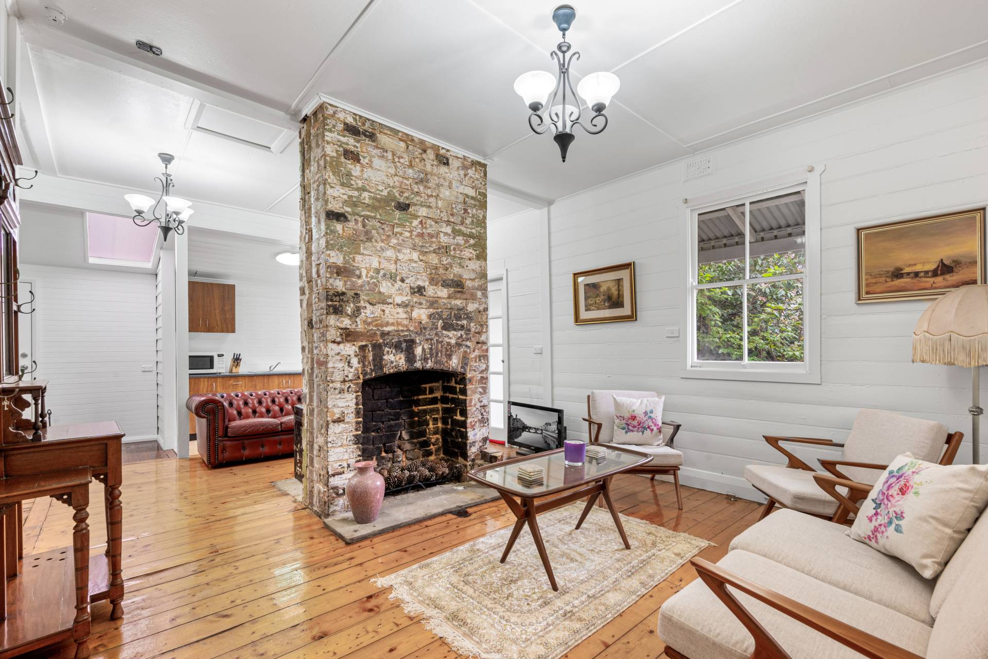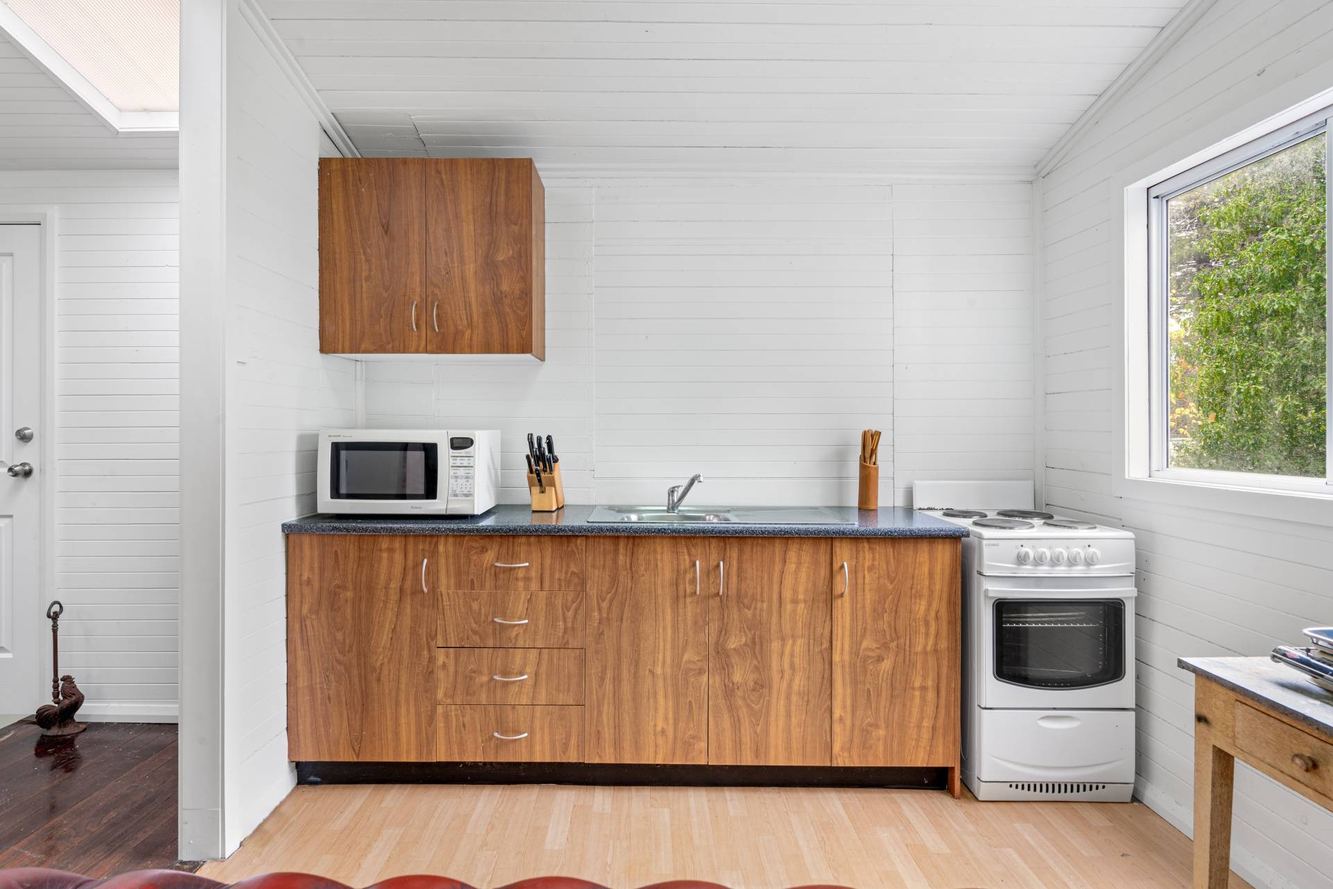 • 2 bedrooms with lovely period rippled glass windows and weatherboard lined walls
