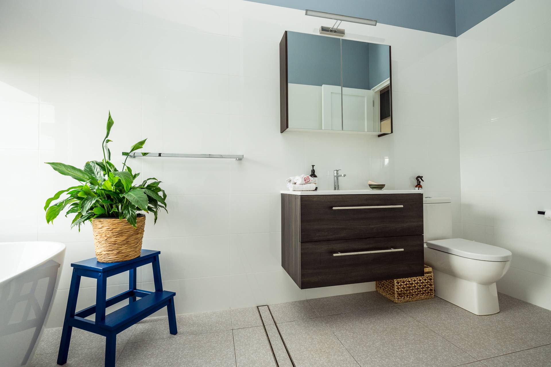 -    Two stunning bathrooms, main has freestanding tub
