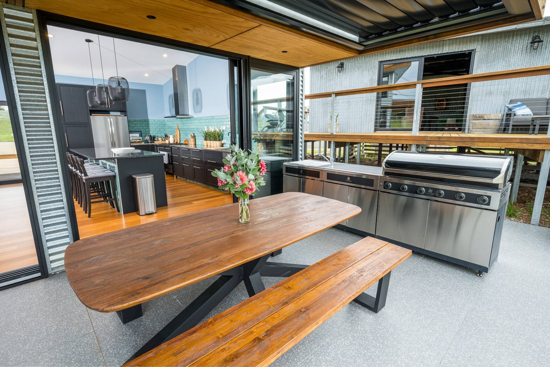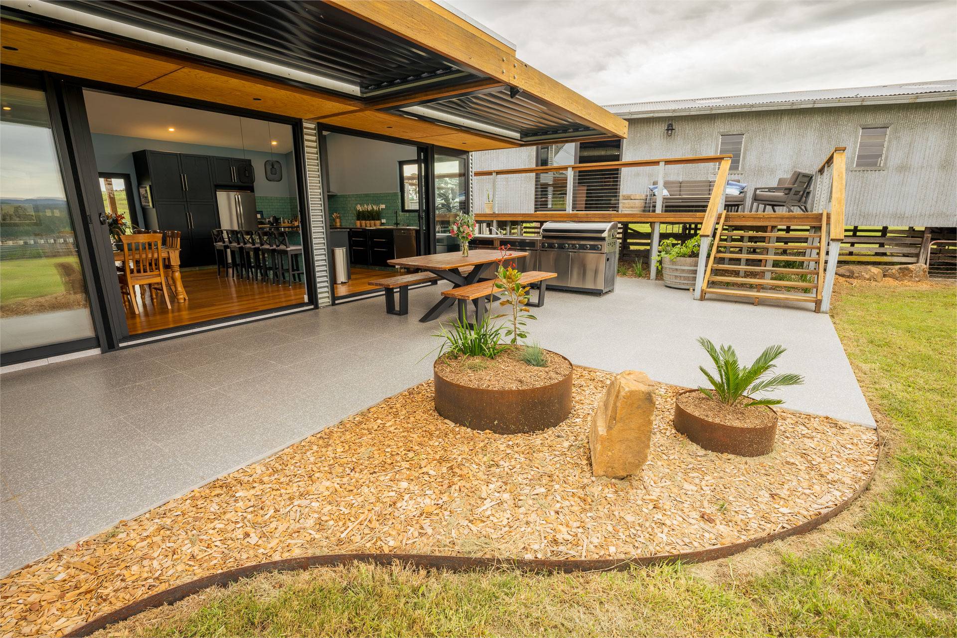 -    Paved alfresco area with remote controlled vergola and outdoor kitchen