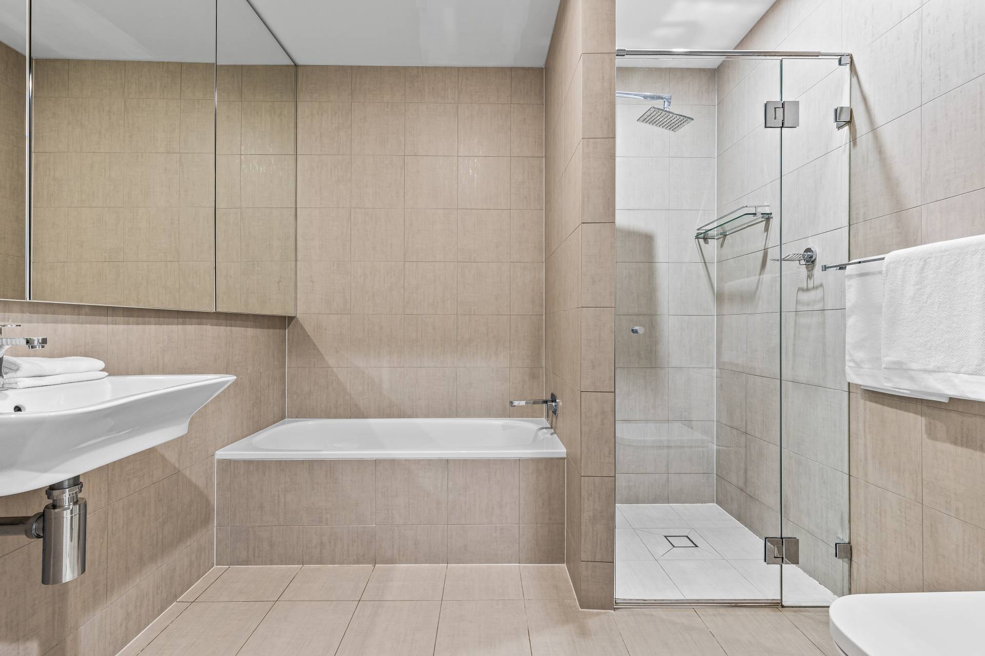 -    Modern bathroom with separate bath & shower