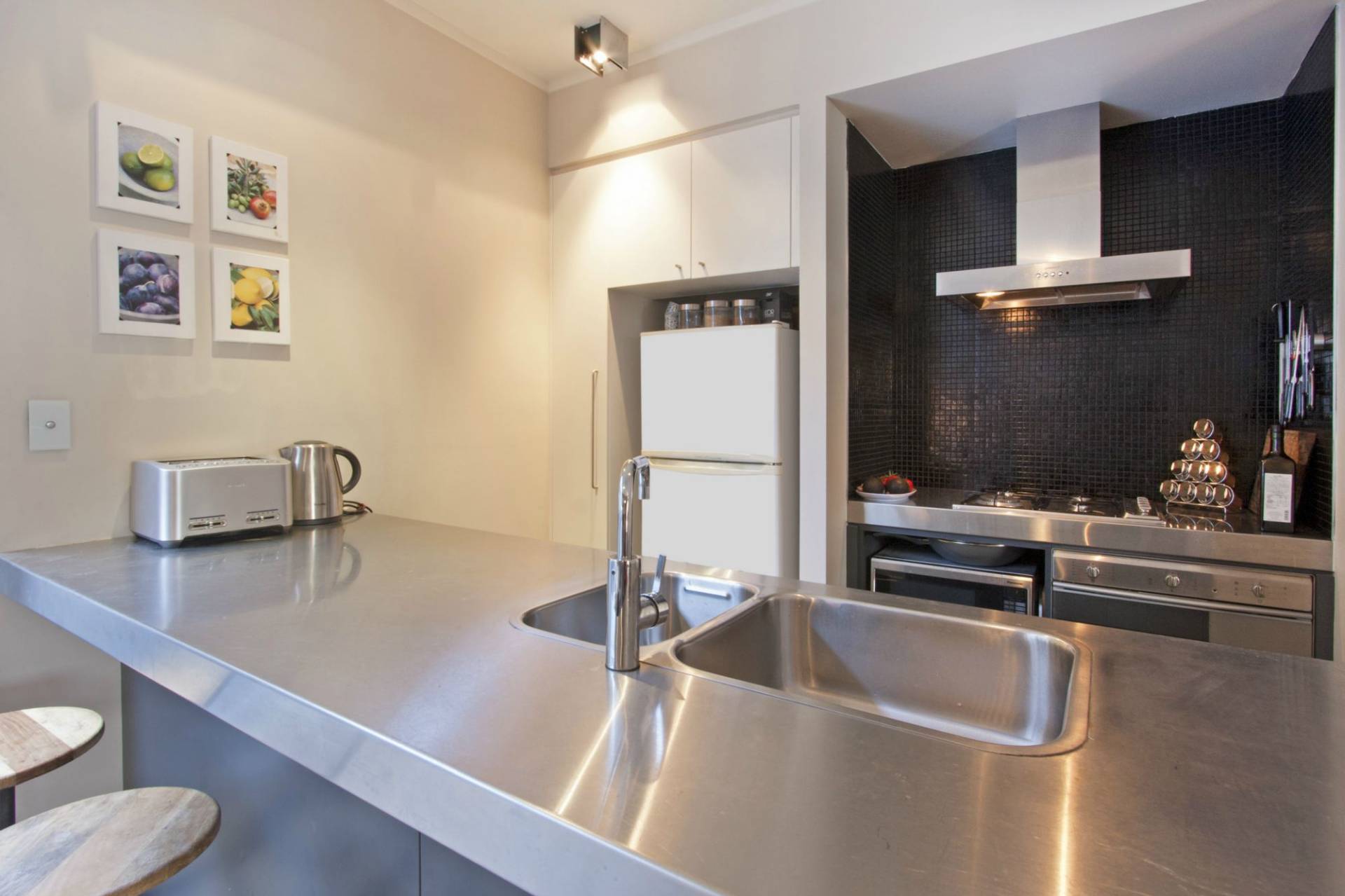 - Sleek kitchen with stainless steel benchtops, gas cooking, electric oven & dishwasher