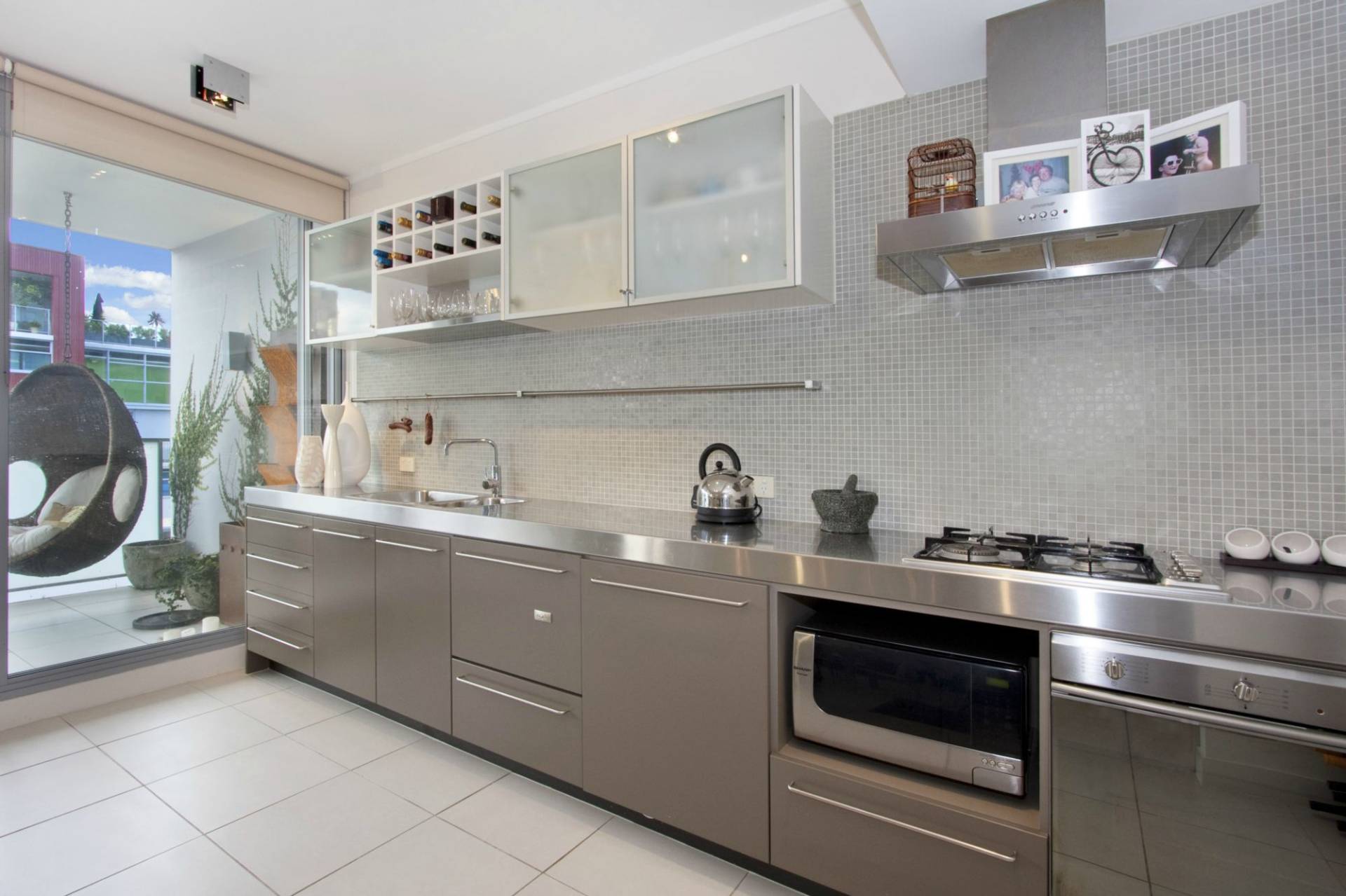 - Sleek kitchen with gas & electric cooking, dishwasher, stainless steel benchtop and integrated wine rack