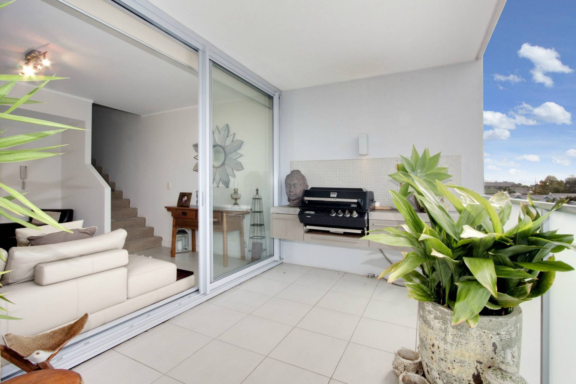 - Huge entertaining balcony spanning the width of the apartment with built-in BBQ
