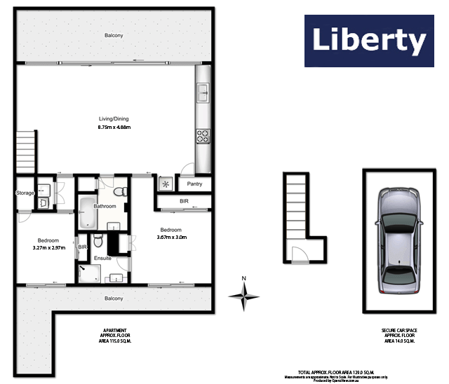 Size: 115 sqms + 14sqm car space