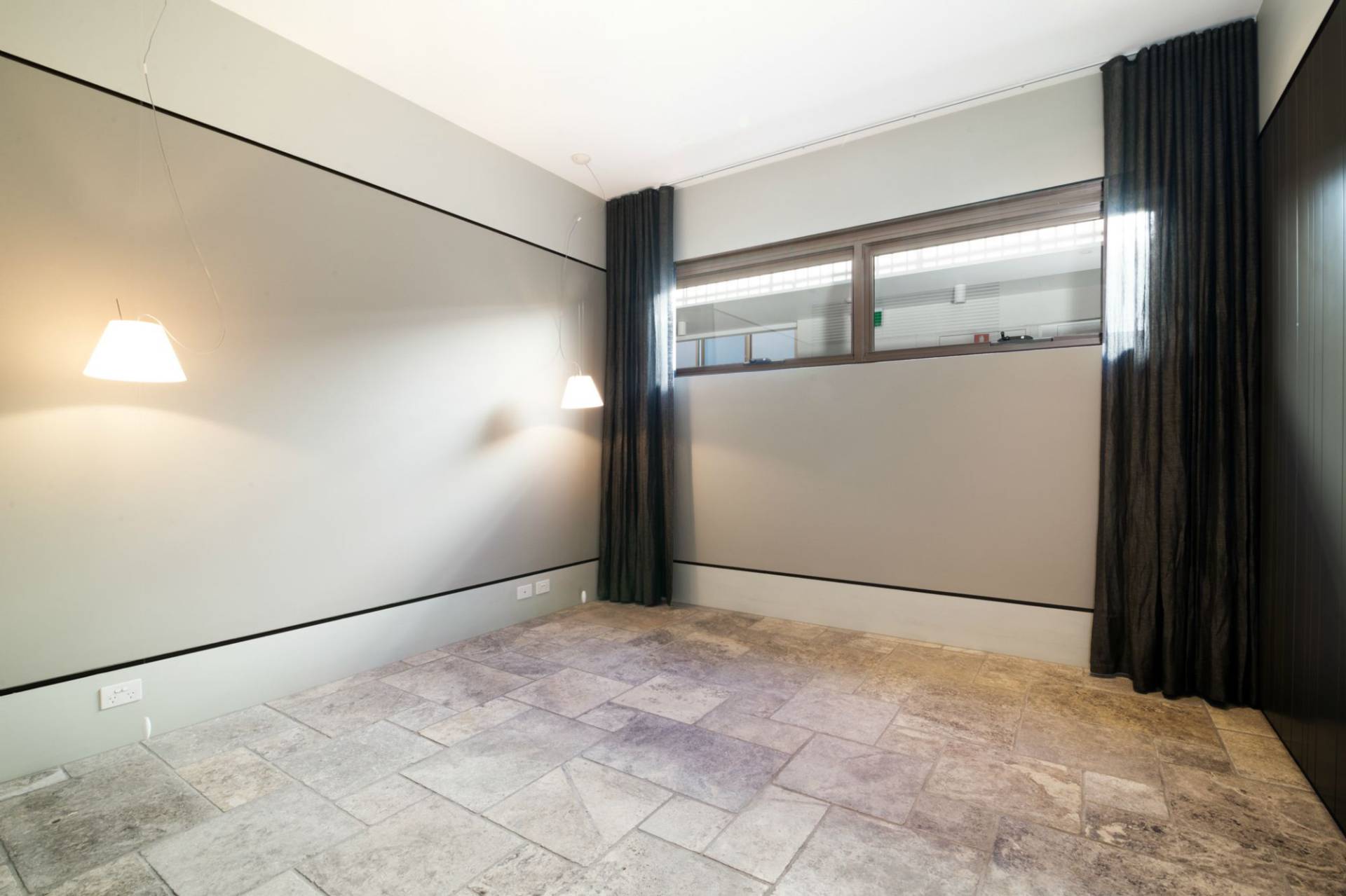 The large size bedroom will accommodate a king size bed and also features extra large wardrobes and very stylish blinds and curtains. The bathroom is beautifully appointed with handmade tiles, walk-in shower and chic vanity & mirror.