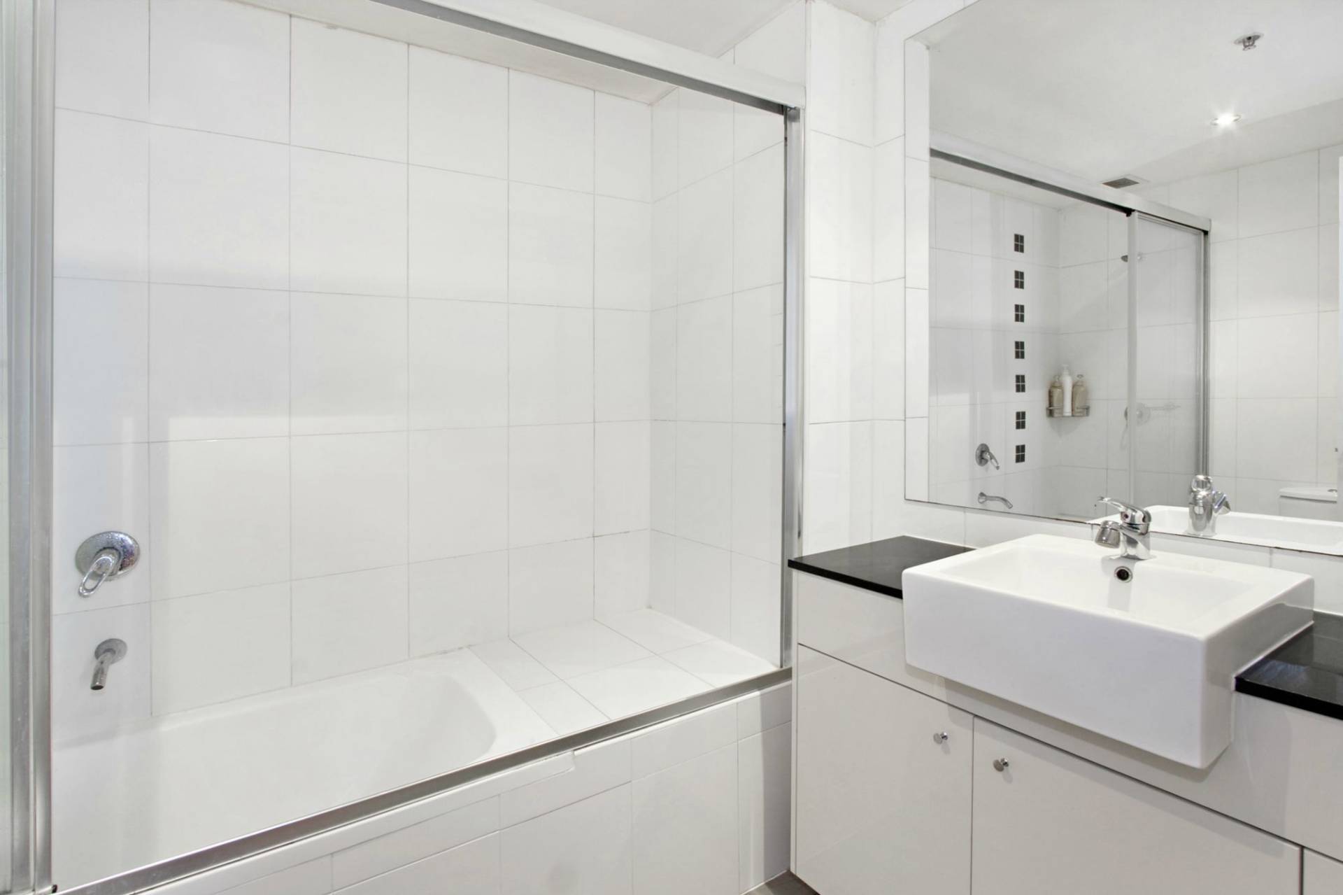 - Large bathroom with bath and plenty of storage with the stone topped vanity