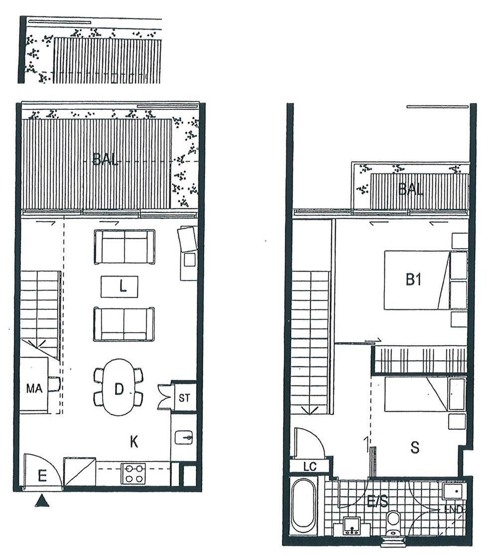 Located within the Wilkinson award winning "Mondrian" apartment complex is this fantastic, north facing split level 1 bedroom plus large study home spread over 79sqms