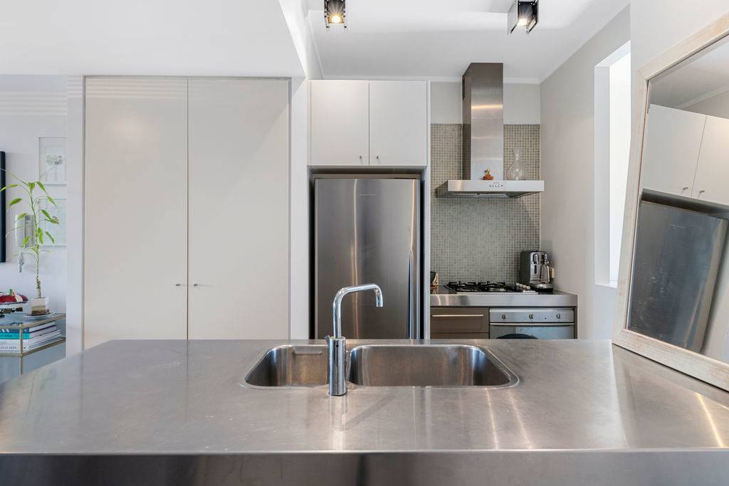 - Island kitchen with stainless steel benchtops, polyurethane joinery, gas cooking & dishwasher