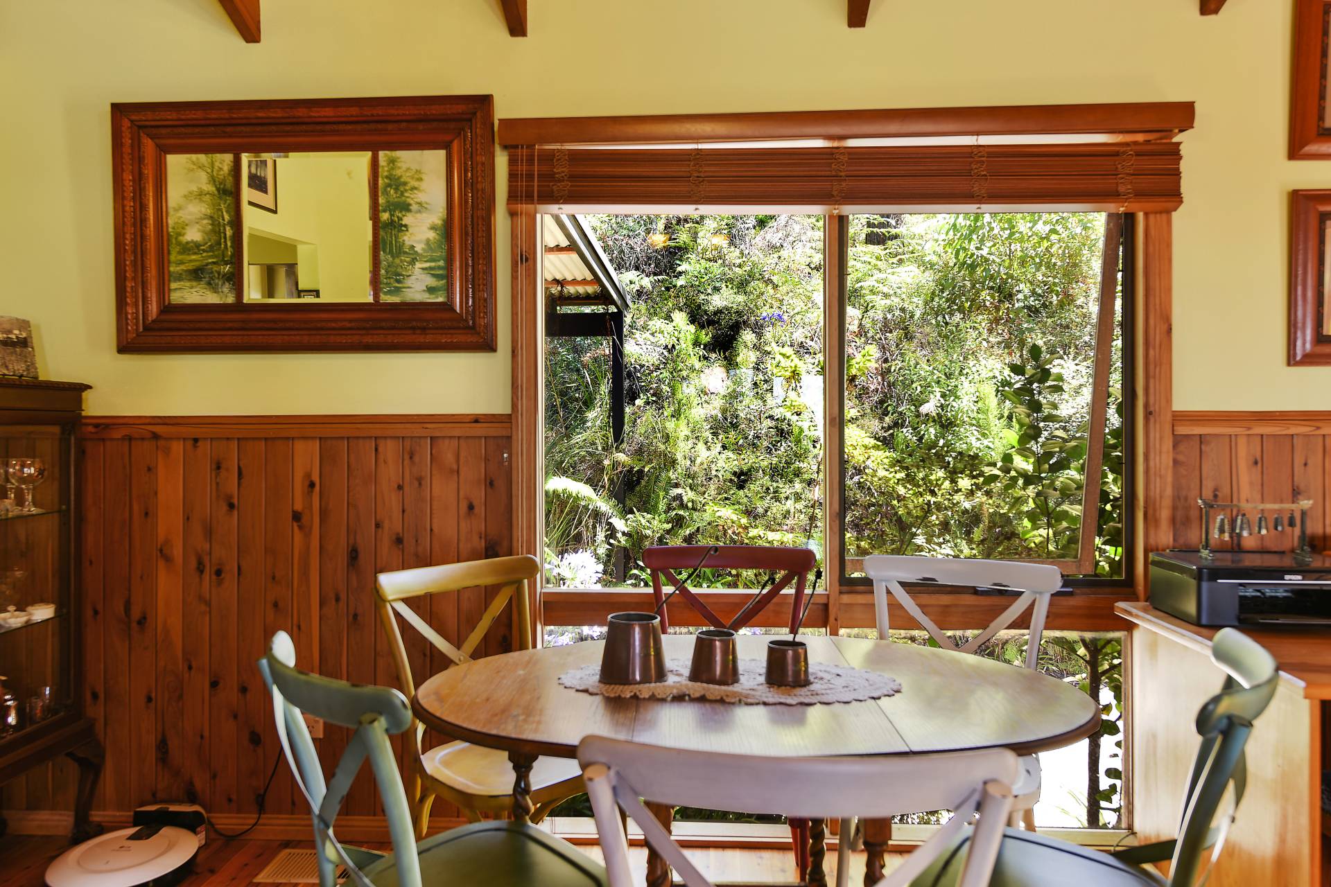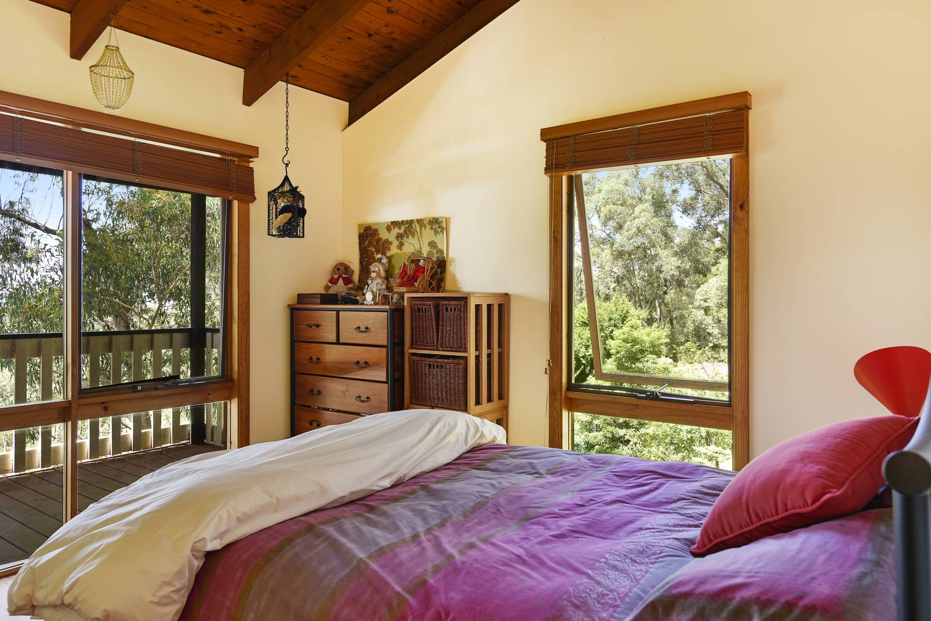 ; This spacious mountain home is perched on the edge of the valley with a superb eastern view. Wander down into the bush or sit on the balcony and toast how lucky you are to be this close to nature yet only minutes to village cafes and railway.