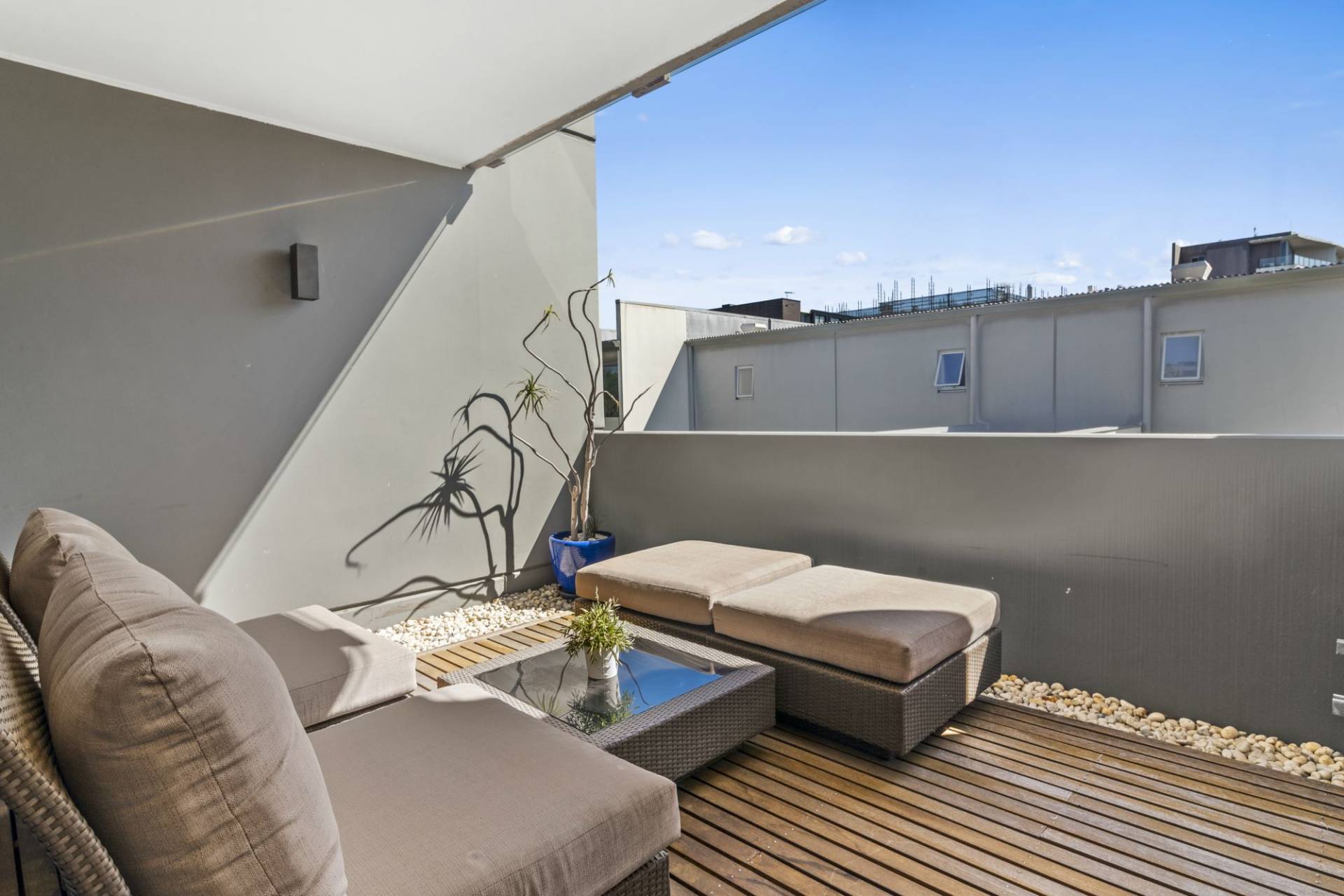 The apartment features 2 bedrooms, 2 chic bathrooms, boasting a true North aspect, district views, light & airy open plan living area, north facing balconies off the living & main bedrooms, sleek kitchen with SMEG gas cooking, electric oven, integrated dishwasher & Caesarstone benchtops, built-in media desk with NBN available, huge storage area under stairs and 1 undercover security carspace. Air Conditioning in the living room and main bedroom.