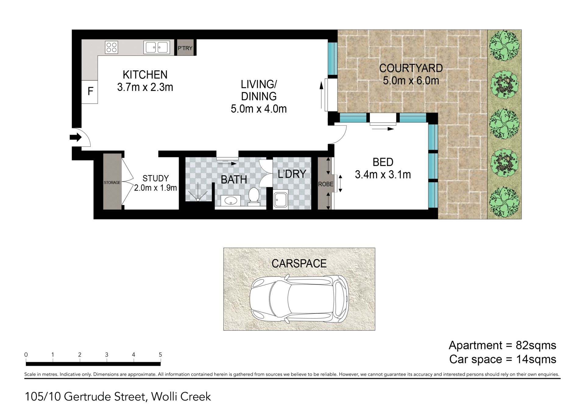 Total size = 96sqms (Apartment = 82sqms, Car space = 14sqms)