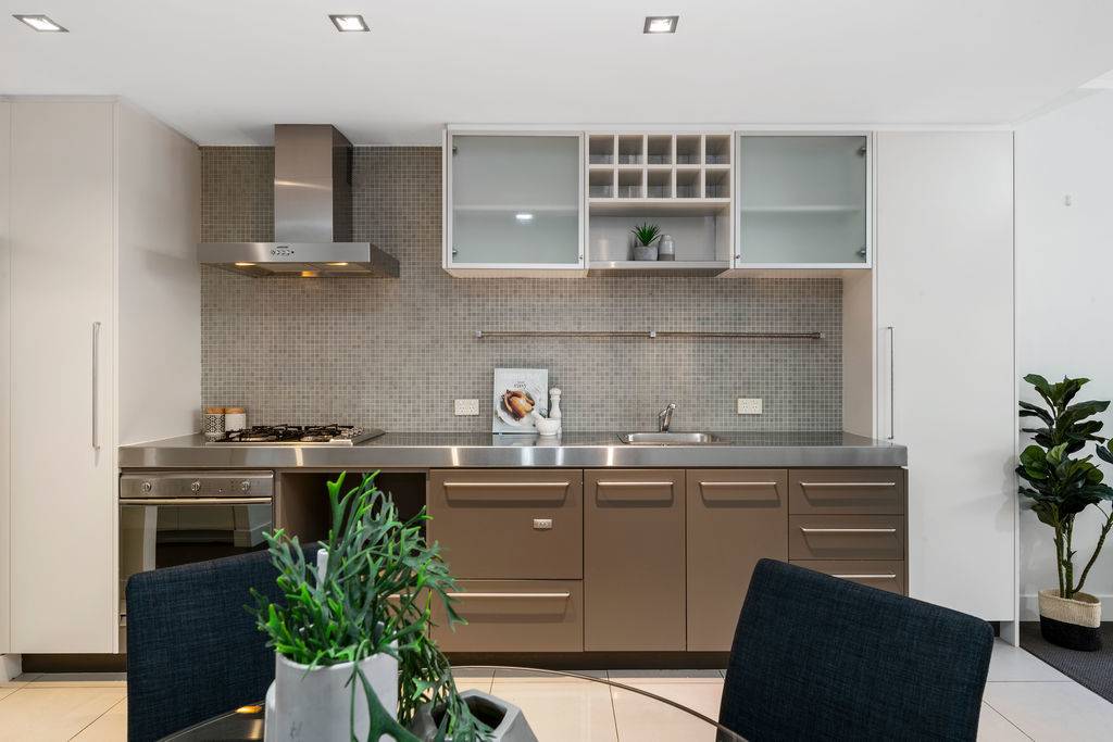 - Sleek kitchen with polyurethane joinery, integrated wine rack, pantry, stainless steel benchtop, gas cooking and dishwasher
