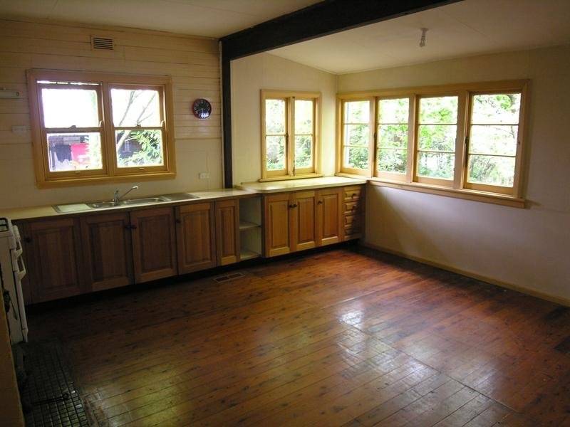 3 bedroom older-style weatherboard, built-ins in 2 bedrooms, natural gas central heating, large living room with new carpet, huge eat-in country kitchen, gas cooking, LUG, meandering garden in quiet street, 10 minutes walk to Leura Station.