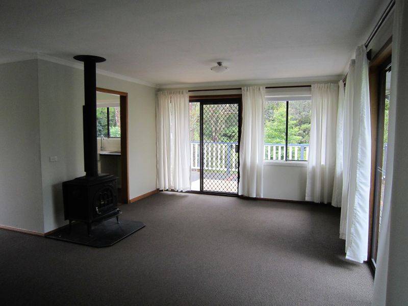 This 2 bedroom modern cottage is light, sunny and airy throughout, built-ins in both bedrooms, large timber kitchen with gas cooking, slow combustion heater, wrap-around timber deck overlooking great yard backing to reserve with creek at rear, large under house storage with laundry and second toilet, off street parking, perfect aspect!