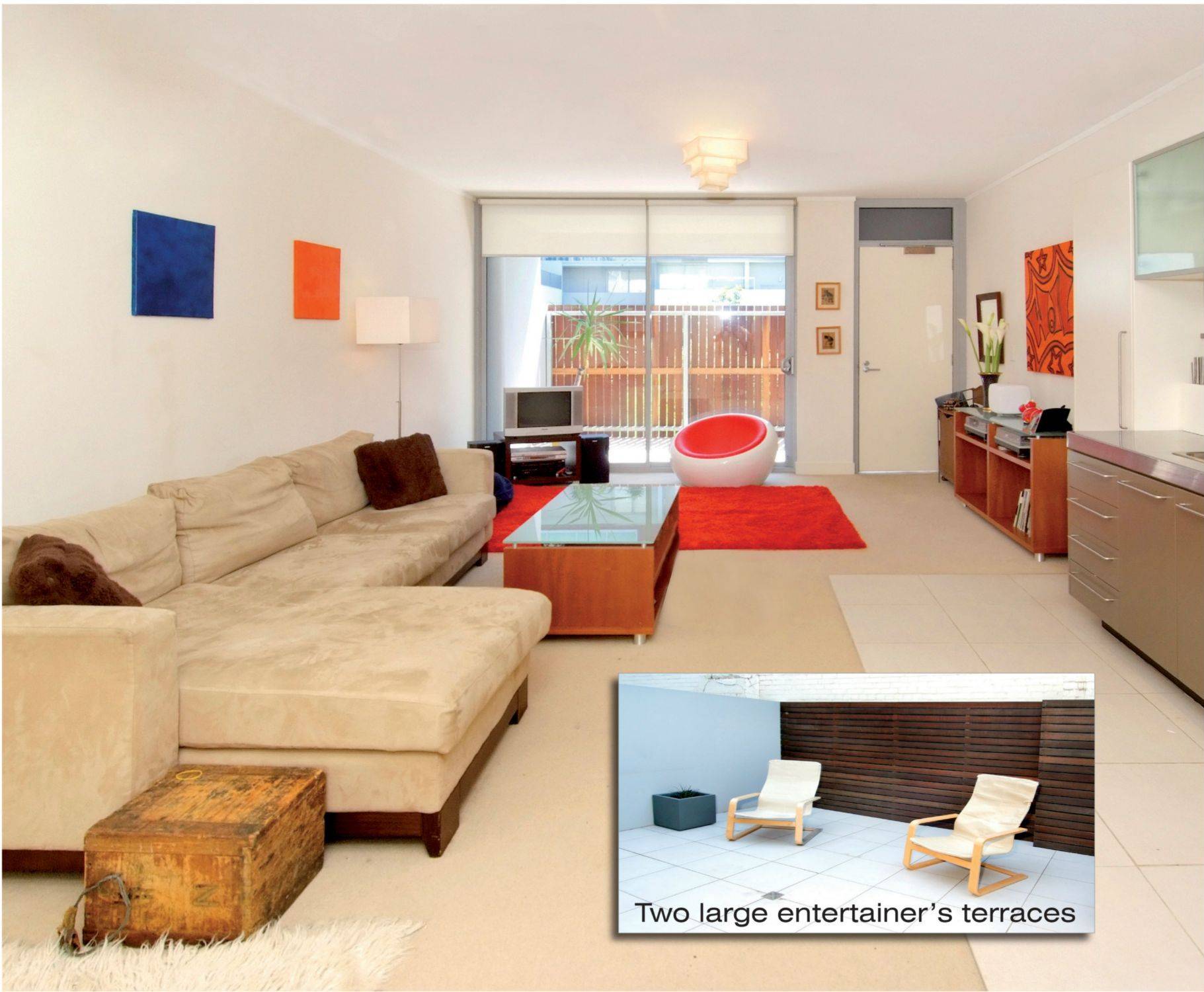 Light filled and spacious would describe this one bedroom garden apartment with large sun drenched front & rear courtyards which looks out on to the private internal garden area in the renowned Warehouse 5 apartment complex.